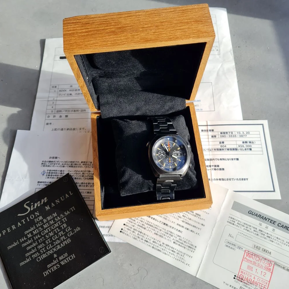 - The set consists of the original wood box, the Sinn manual all the sell documents from Japan, and the invoice of the 2022 service.