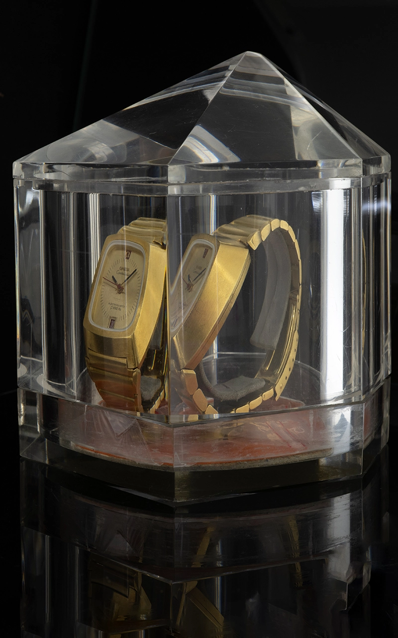 For Sale: Rare and unpolished Omega Constellation Ref.: 196.006, Electroquartz Beta 21 in Solid 208 Gramm 18k Yellow Gold –Set with AccessoriesGold value 12k €, asking 15k for this beauty with all its accessories.