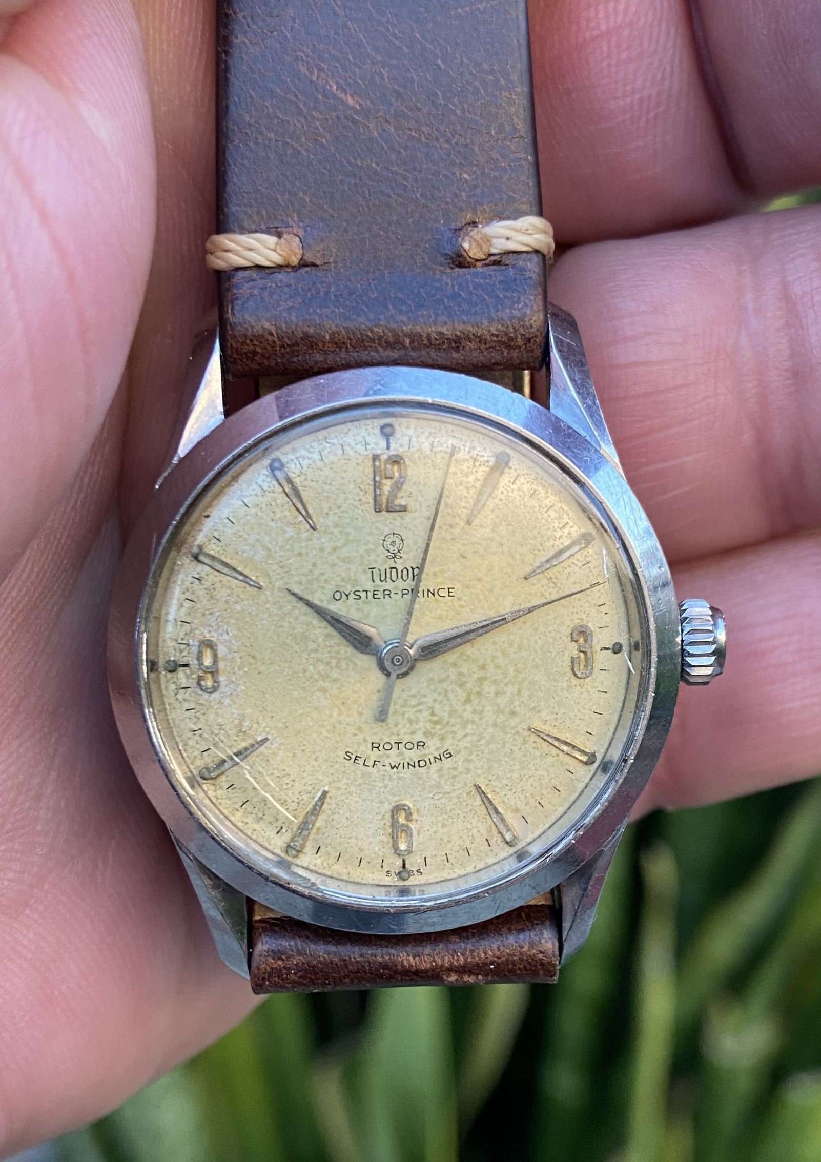 Tudor Oyster timepieces started to appear in 1946 as manual-wind watches. In 1952, the “Oyster Prince” was introduced. Prince signified the presence of an automatic movement and was Tudor’s equivalent of Rolex’s “Perpetual”. They were — and are — one of the most robust movements one could imagine; bulletproof almost!