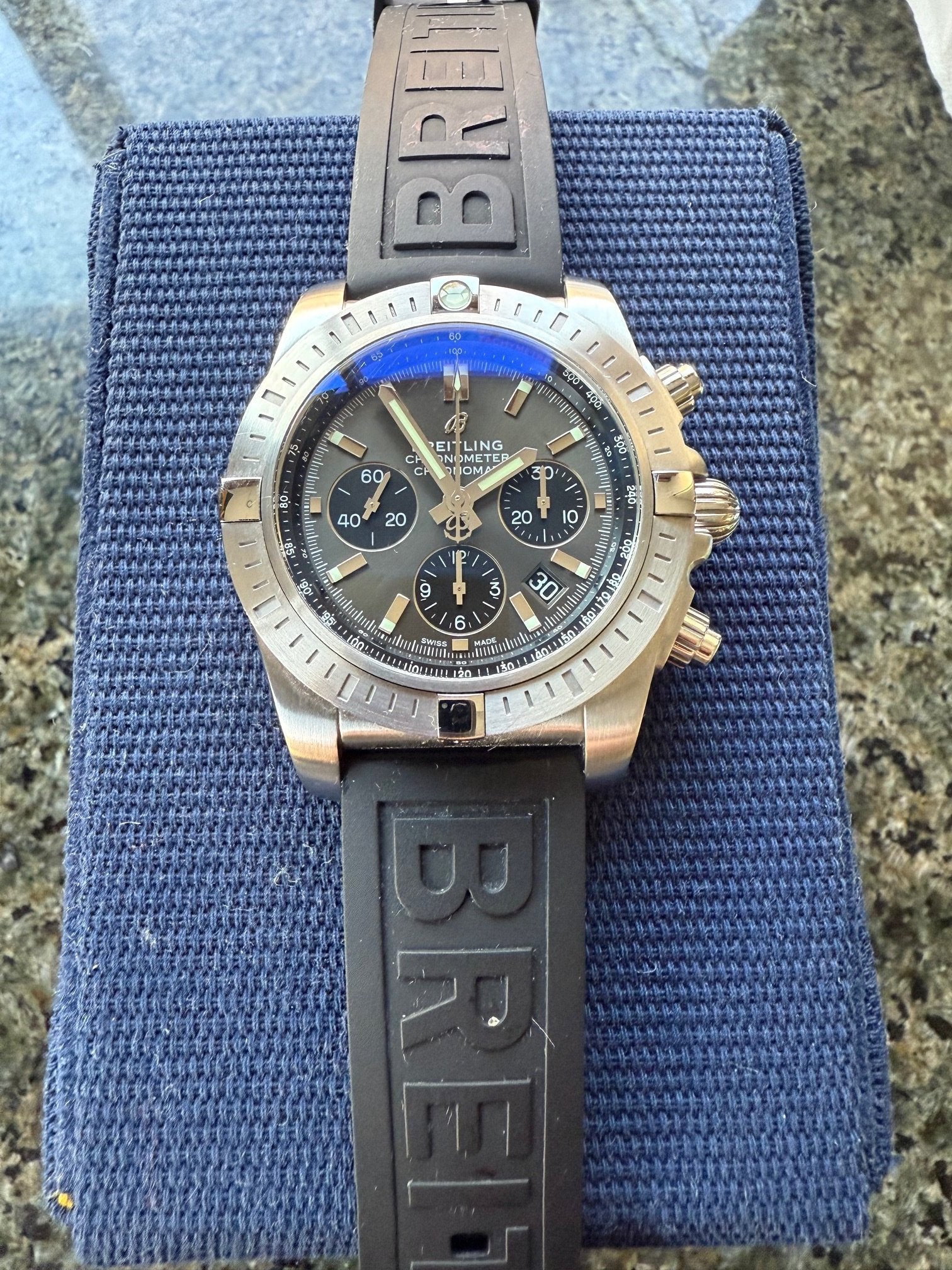 WTS Breitling B01 Chronomat 44 Black Eye Grey. Owned for a couple of years but not getting much wrist time. Selling for $3700 shipped. Comes with rubber strap and bracelet, original box, travel case, papers, and original bag/hat unworn when I received at purchase.
