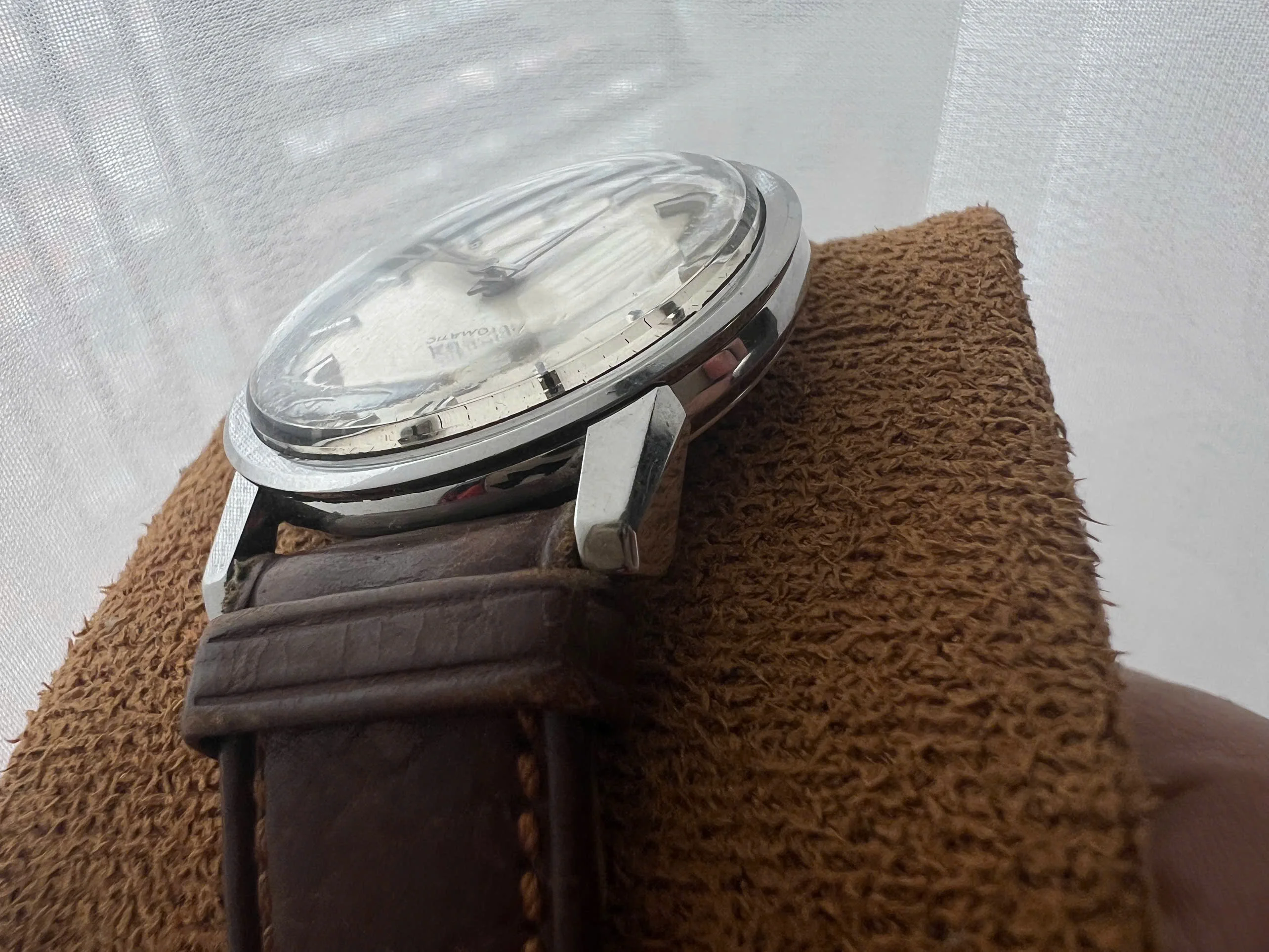 Dial: The original silver dial is in good condition, with a sunburst effect. Minor aging spots may be visible under a microscope but are hardly noticeable to the naked eye. The prints, hands, and hour markers are all in excellent shape.Case: The watch measures 35mm (excluding the crown).