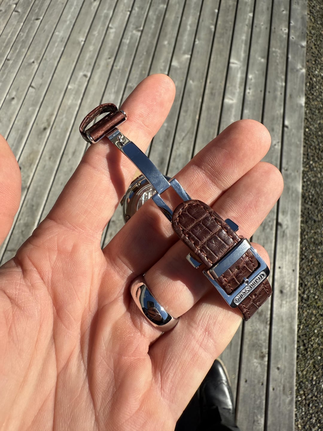 This would make an absolutely incredible everyday wear for the office. Grand Seiko finishing blows me away every time! Model: Elegance Mechanical GMT Ref# SBGM221G Case Material: Stainless Steel Case Dimensions: 39.5mm Bezel: Stainless Steel Dial: Ivory Dial with Blued GMT Hand Band Material: Grand Seiko Brown Leather Deployant Max Wrist Size: 7.75 in. Original Purchase Date: March 2024 Movement: Automatic, Mechanical Condition: Light Scratches to the case, bezel and clasp. Accessories: Full Set! Still Under Grand Seiko 5-Year Warranty! Price: $3️⃣,4️⃣0️⃣0️⃣Shipped! Bank wire price only. Can take cards at a higher cost. WA residents subject to sales tax. Instagram: porcellojewelers Email: [email protected]