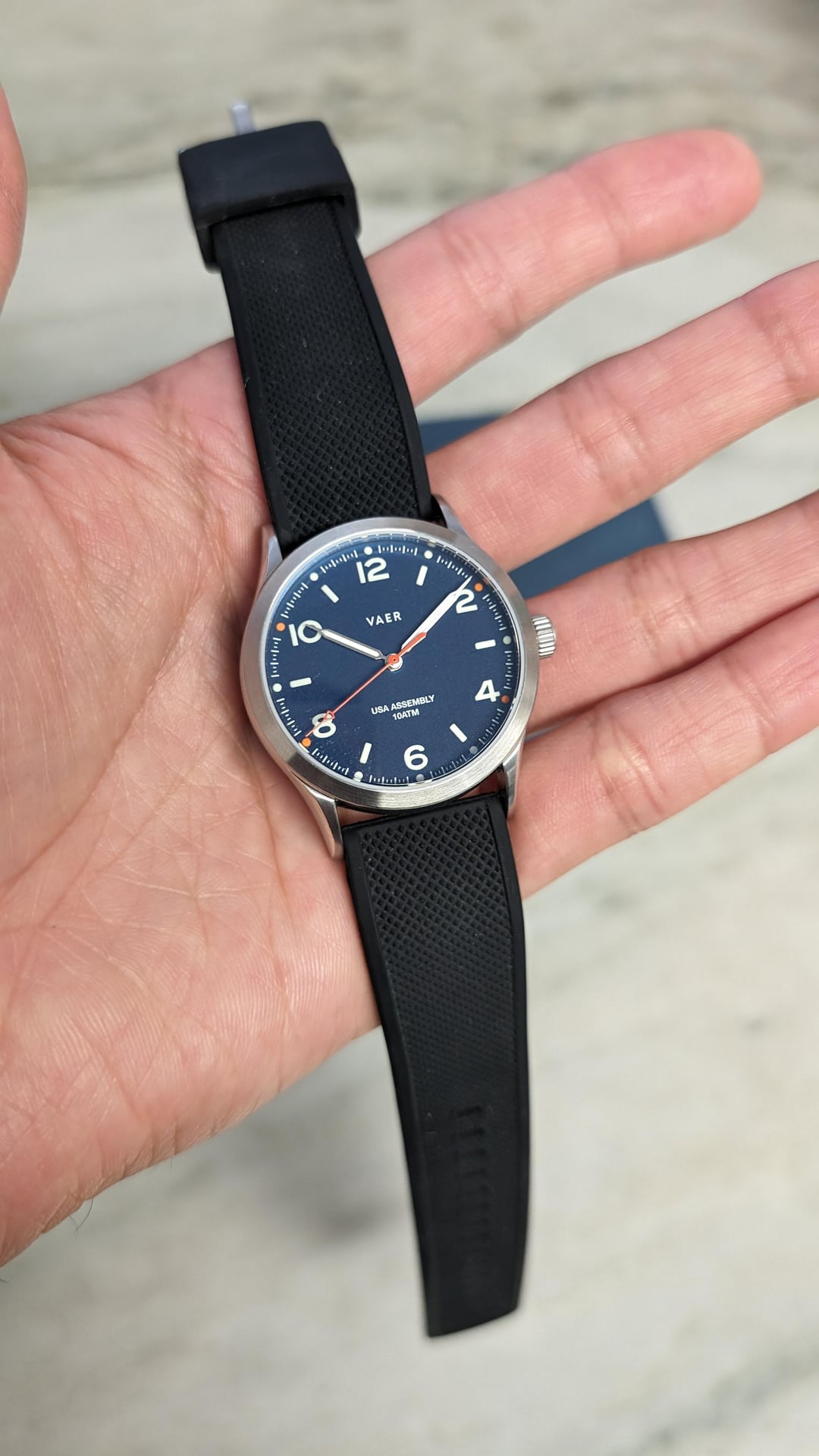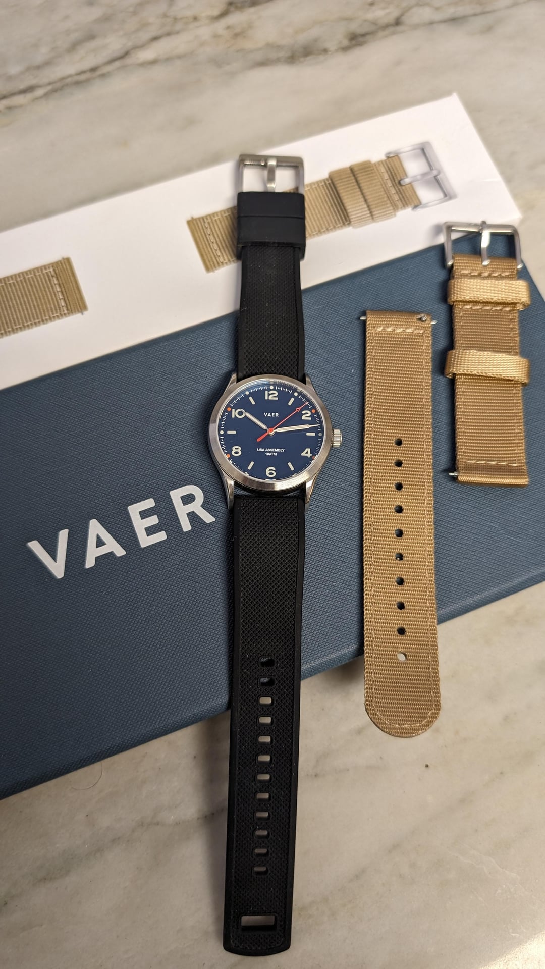 Hey All, I'm looking to sell this Vaer C3 Design Navy - 36mm Solar + extra unworn khaki strap. This is a great solar powered field watch. Being quartz + solar powered and having a 100m water resistance, this is the perfect field watch. 6 hours of sunlight will provide this watch six months of power reserve. Link to product page: https://www.vaerwatches.com/products/c3-design-navy-usa-solar ###Watch Condition Almost mint condition, full kit. Watch was purchased at Windup Watch Fair in October 2023, and it's literally sat in the safe since then. I've only worn it couple of times. No visible scratches on the front of the watch. The caseback has a couple of minor scratches. ###Price List price: $299 (sold out online) My price: $175 shipped Not interested in trades at the moment. ###Payments accepted Zelle/ Venmo/ Wire transfer/ PayPal Will ship from north VA. Please feel free to reach out to me for any other information. I'm also happy to have a phone/video call if needed. Timestamp: https://imgur.com/a/tISfs8b