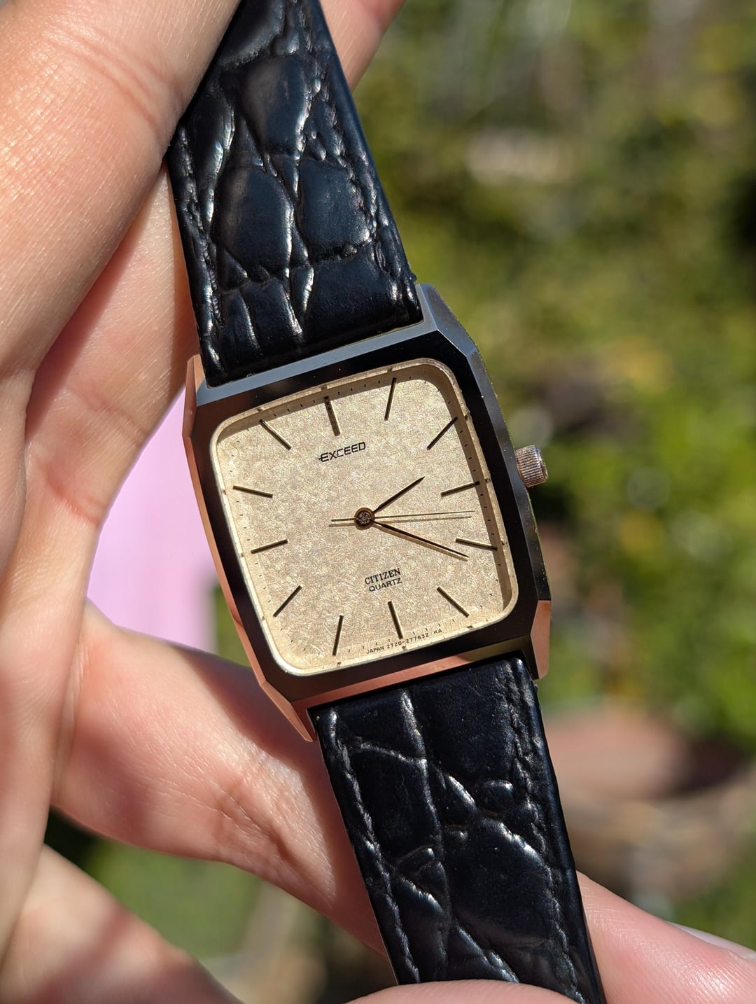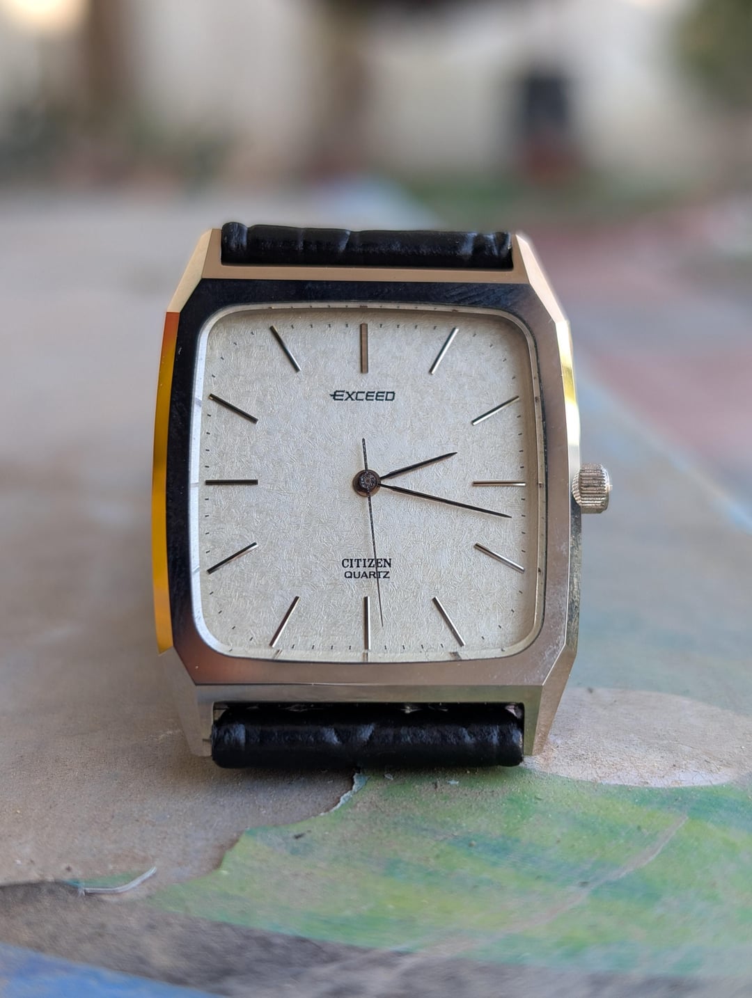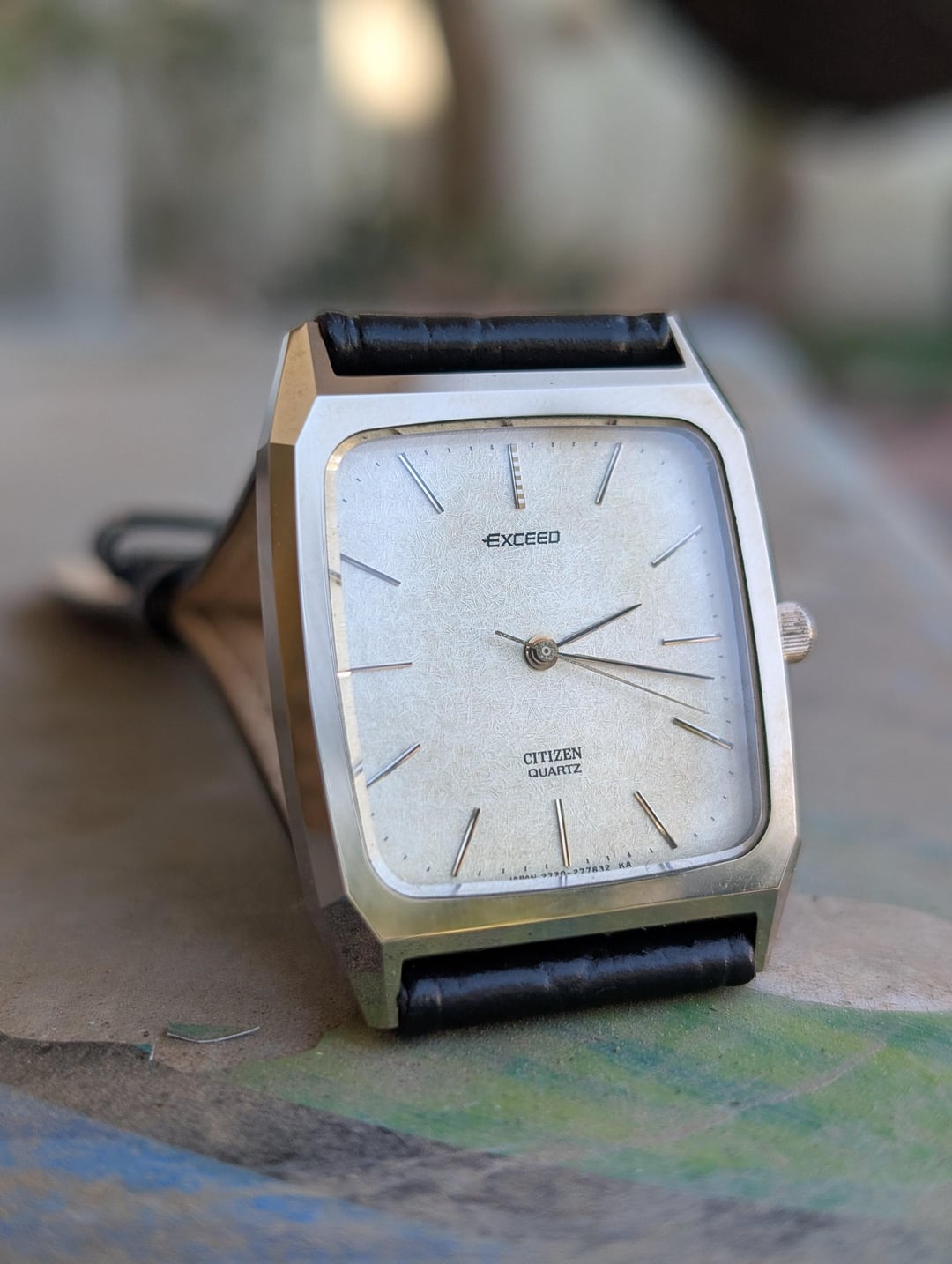 Greetings Watchexchange! Up for sale is a spectacular vintage Citizen Exceed with a titanium nitride ceramic case, sapphire crystal and a beautiful textured dial. These older Citizen Exceeds are very reminiscent of the Seiko Dolce watches of the era, and feature stunning faceted ceramic cases which are virtually scratch proof. The watch has a near mint case, scratch-less sapphire crystal and comes on an aftermarket 20mm leather strap. The watch has applied indices, with a perforated marker at 12 o'clock, and a signed crown with the "E" for Exceed. The dial has a beautiful almost woven texture, that plays well with light. The watch runs well, and has recently had a battery replacement. The watch is pictured on a 6.5" wrist for size reference. [Timestamp ](https://imgur.com/a/AHnv0xS) The watch is priced to sell at $175 shipped via UPS and paid via Zelle or Wise. Please allow 3 to 5 business days of your payment for the watch to be shipped out. Be sure to reach out to me if you have any questions or require additional photographs or information, I entertain requests for custom timestamps. Thanks for looking!