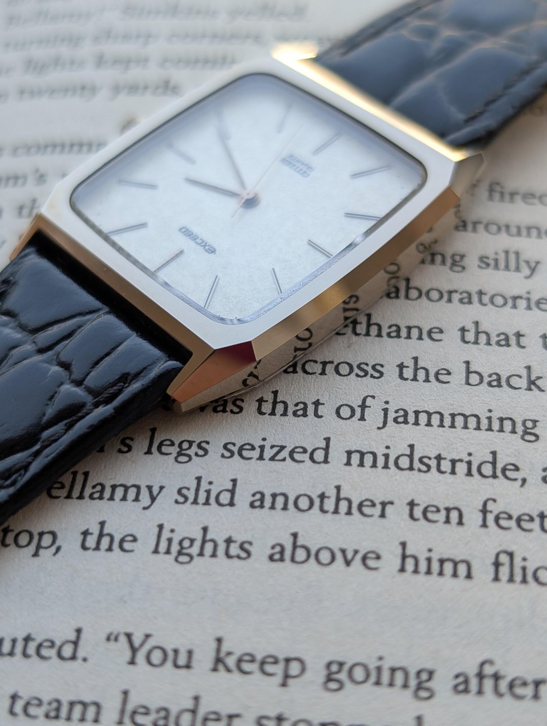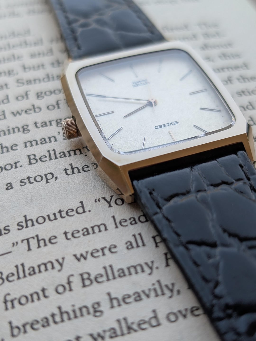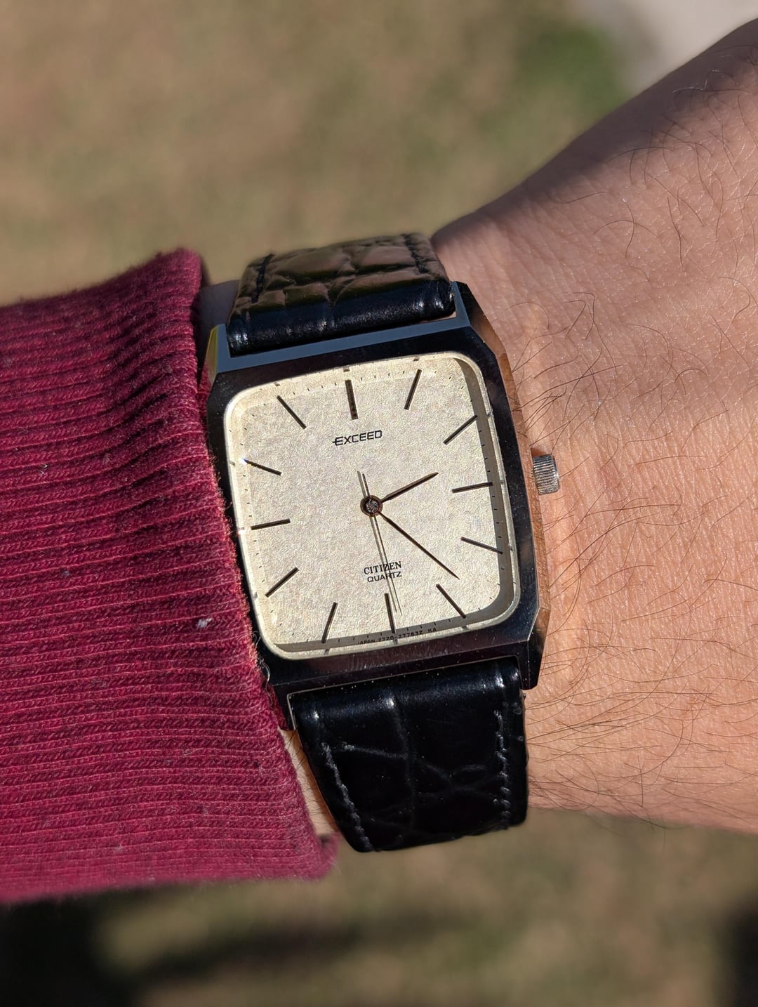 Greetings Watchexchange! Up for sale is a spectacular vintage Citizen Exceed with a titanium nitride ceramic case, sapphire crystal and a beautiful textured dial. These older Citizen Exceeds are very reminiscent of the Seiko Dolce watches of the era, and feature stunning faceted ceramic cases which are virtually scratch proof. The watch has a near mint case, scratch-less sapphire crystal and comes on an aftermarket 20mm leather strap. The watch has applied indices, with a perforated marker at 12 o'clock, and a signed crown with the "E" for Exceed. The dial has a beautiful almost woven texture, that plays well with light. The watch runs well, and has recently had a battery replacement. The watch is pictured on a 6.5" wrist for size reference. [Timestamp ](https://imgur.com/a/AHnv0xS) The watch is priced to sell at $175 shipped via UPS and paid via Zelle or Wise. Please allow 3 to 5 business days of your payment for the watch to be shipped out. Be sure to reach out to me if you have any questions or require additional photographs or information, I entertain requests for custom timestamps. Thanks for looking!