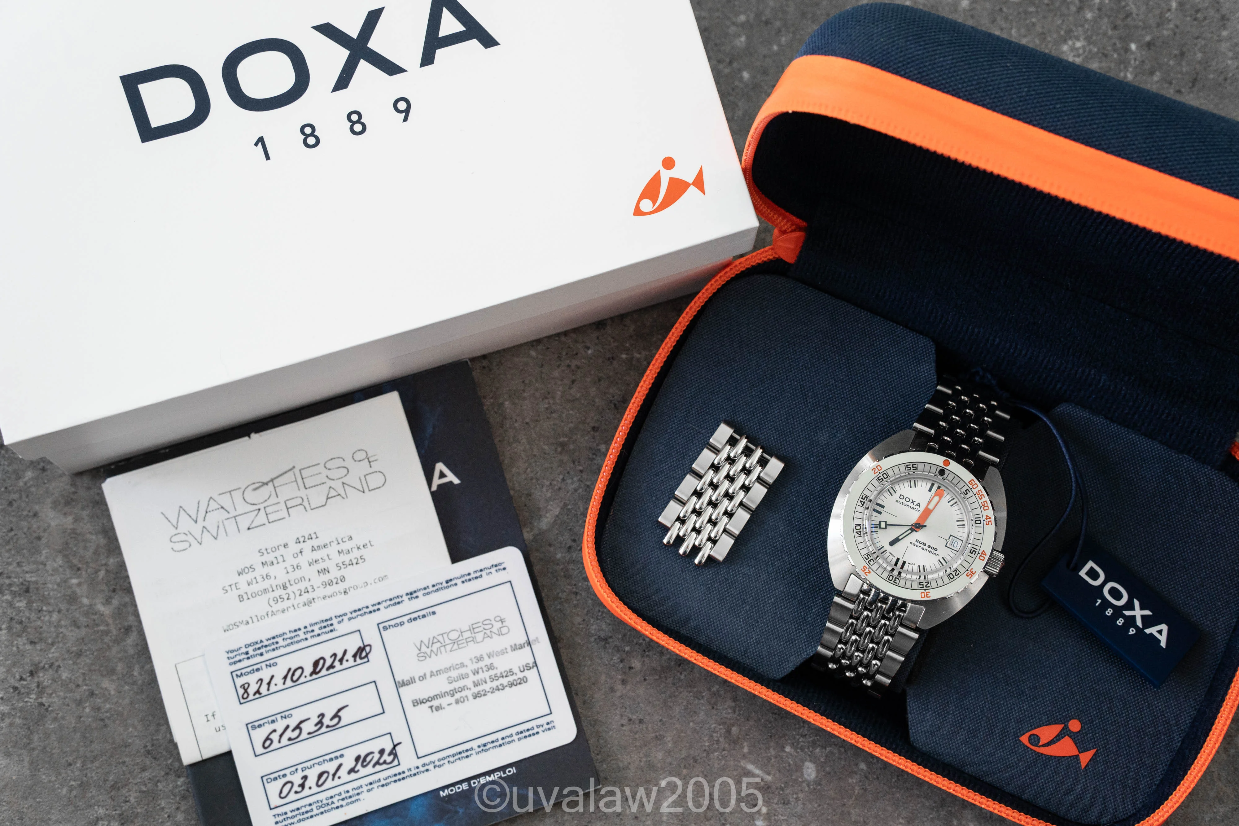 For sale is my silver dial DOXA SUB 300 Searambler in excellent condition with light surface wear. Comes with inner/outer box, manual, hang tag, stamped warranty card, original sales receipt, and all bracelet links. COSC movement running strong at +5s/day on my wrist.