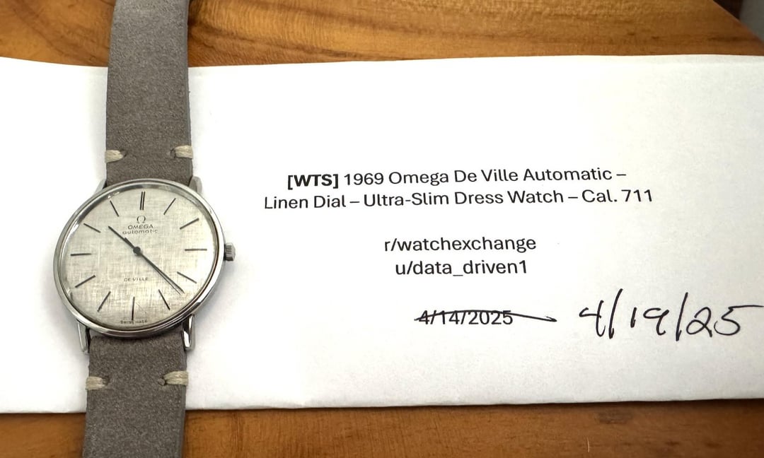 Vor 7 Monate | [WTS] 1969 Omega De Ville Automatic – Linen Dial – Ultra-Slim Dress Watch – Cal. 711 | $600 | |