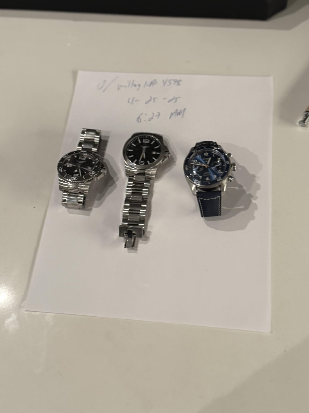 1 . Longines 43mm hydro quartz great everyday watch. $550 2. Longines 43mmhyrdo automatic grey mint $900 3.Longines spirit flyback blue. One of nicest watches I own and you've seen my collection. $2750