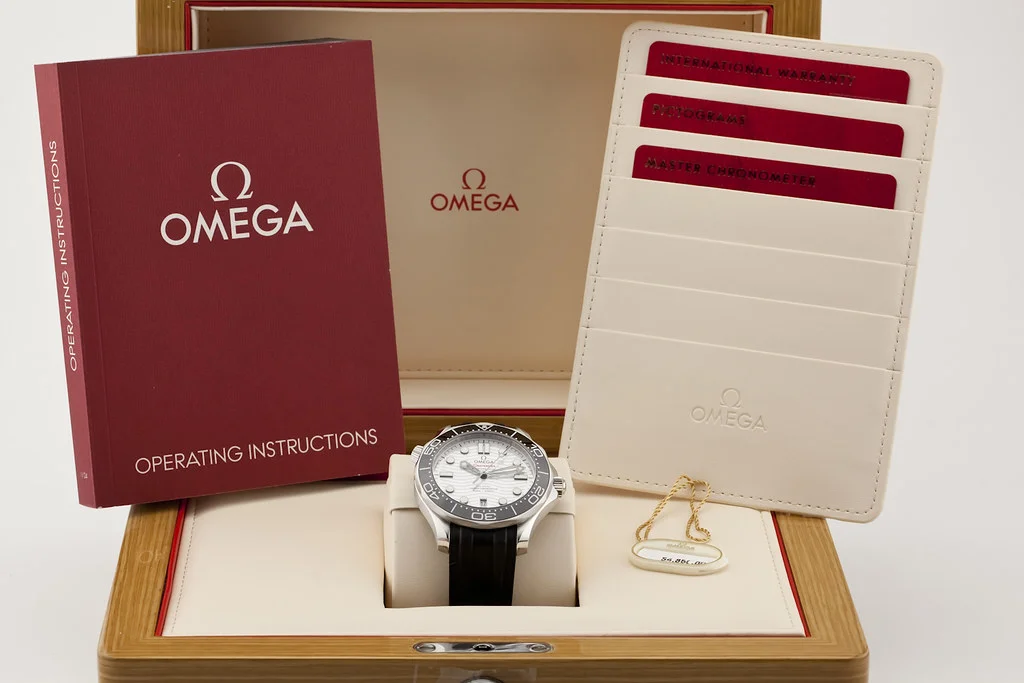 Up for sale is a brand new Omega Seamaster 300 White Wave Dial on Rubber Strap, ref # 210.32.42.20.04.001 It comes complete with all boxes, papers, booklets, hang tag and Omega Warranty Card dated November 2024.