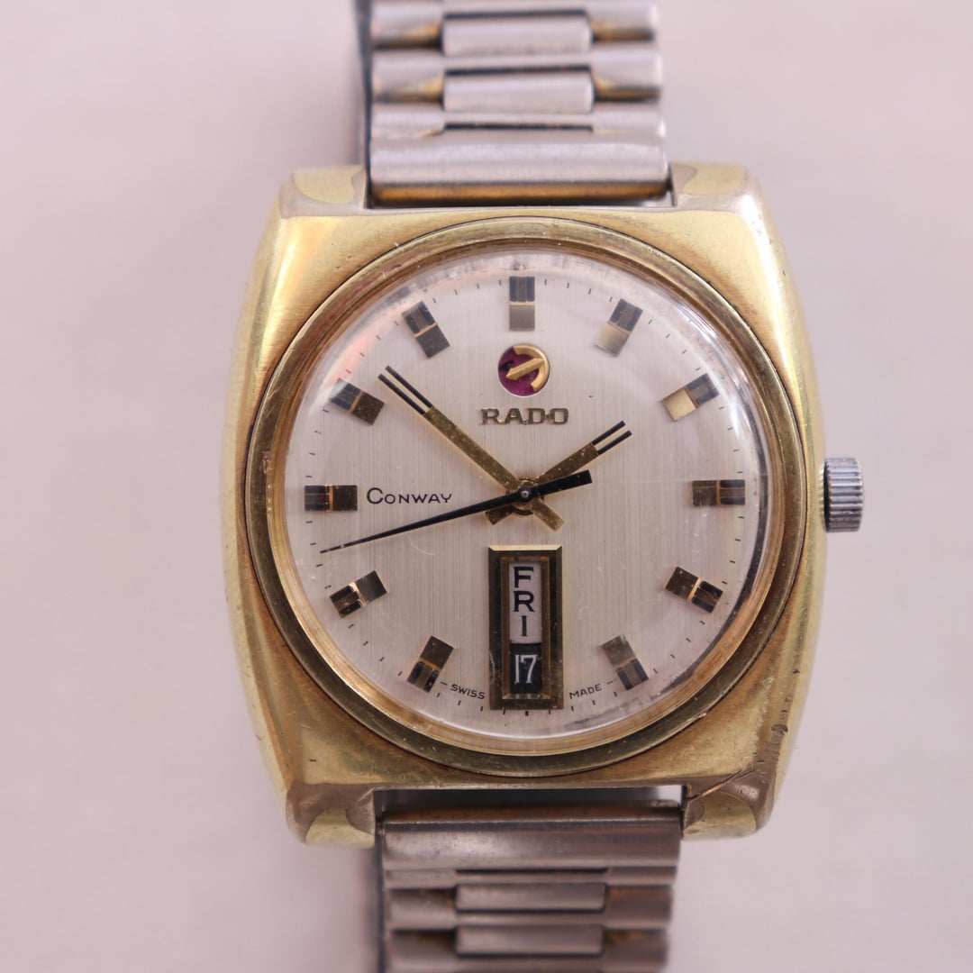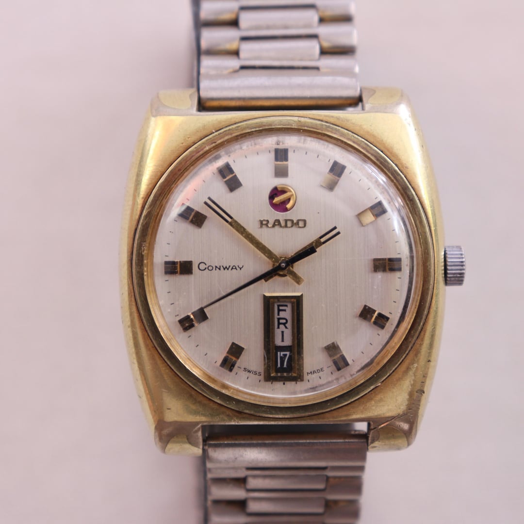 italiano![[WTS] Vintage Rado Conway Automatic 25J | Gold-Plated Swiss Made Watch | Day & Date | Mint Silver Dial | 41mm TV Case | Classic Luxury Timepiece.
