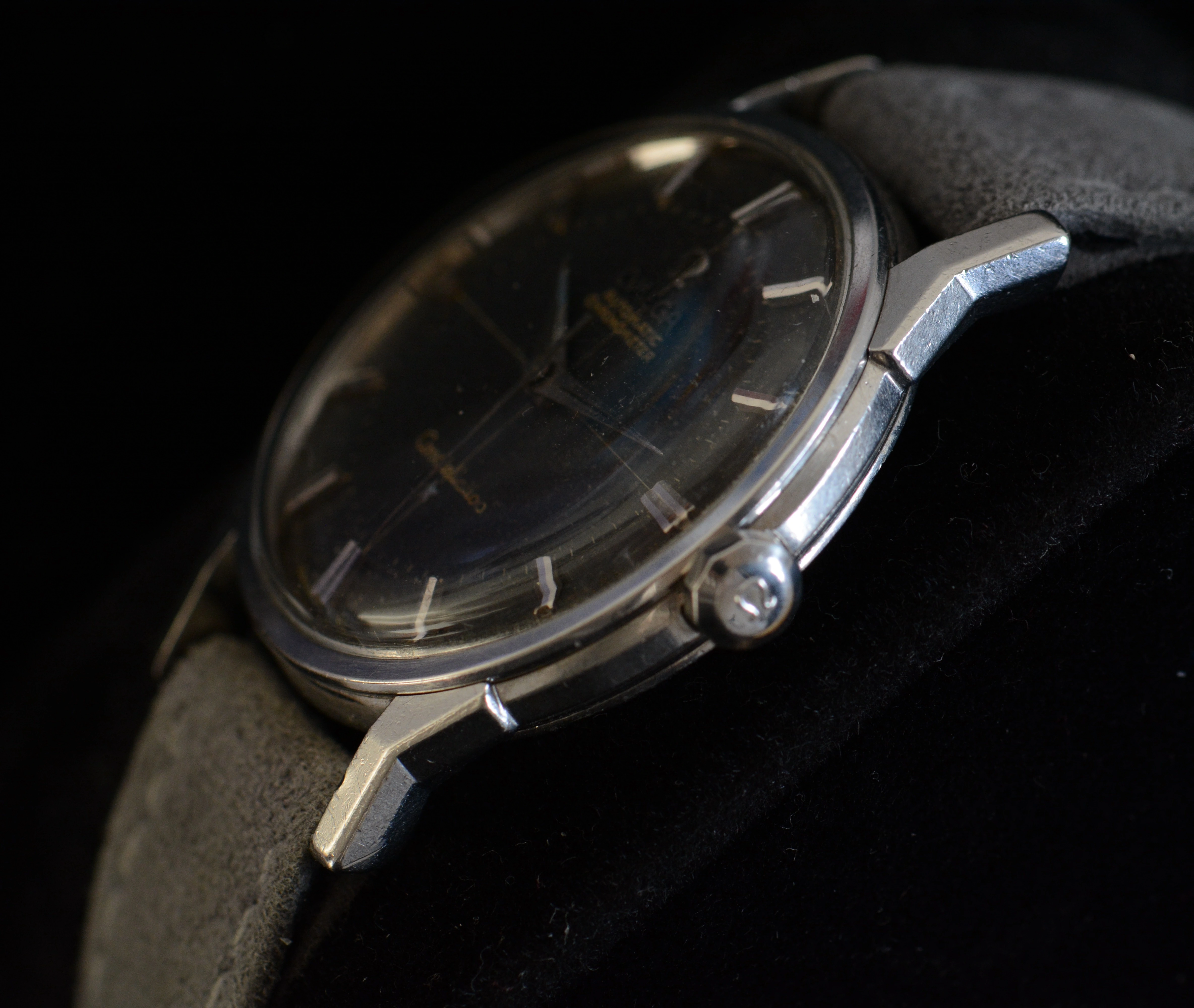 Case: Stainless steel case dog-leg case. It has seen a polish or two, but the facets on the lugs are still visible. There are scratches on the caseback from prior case openings (not by me).