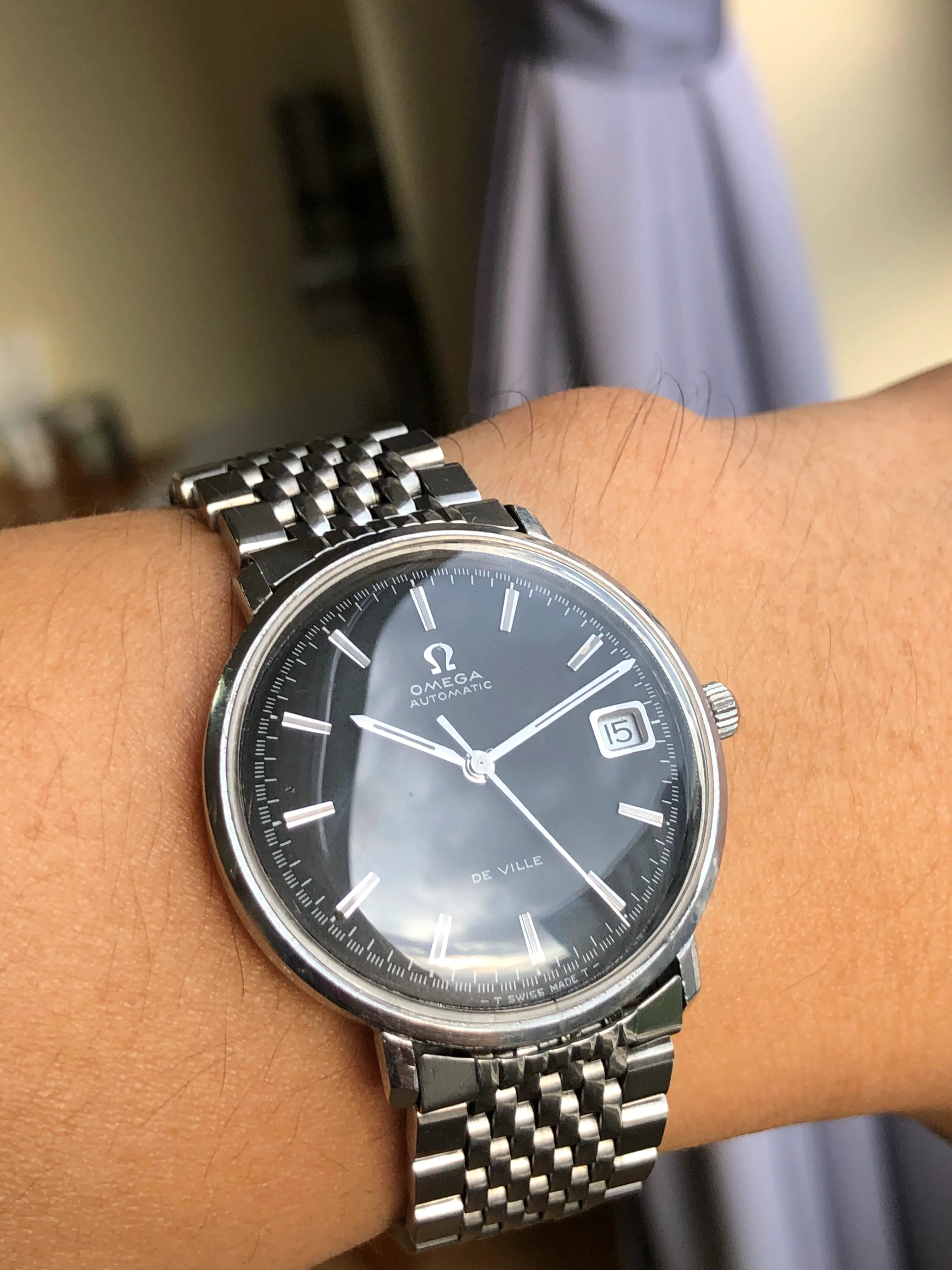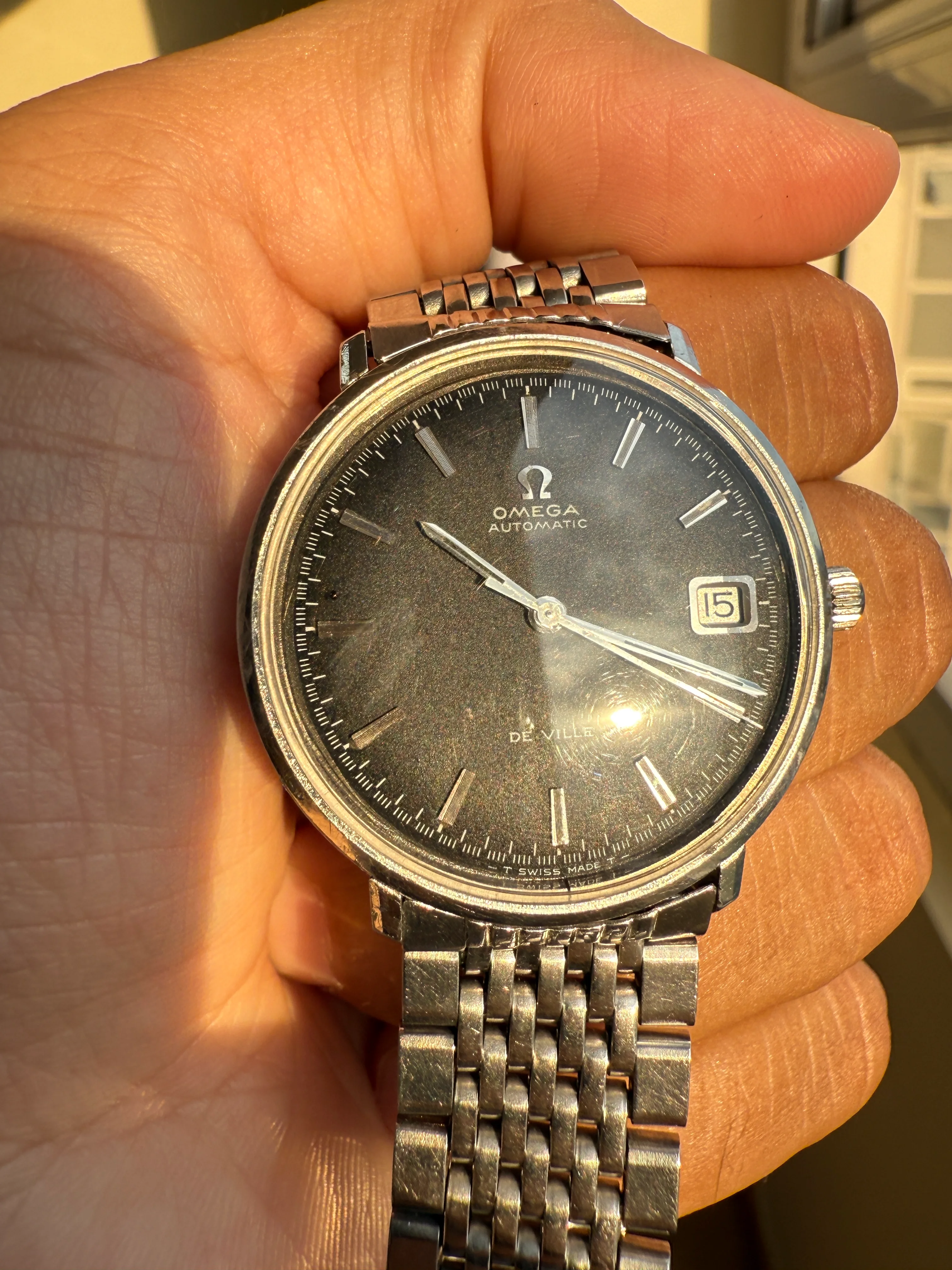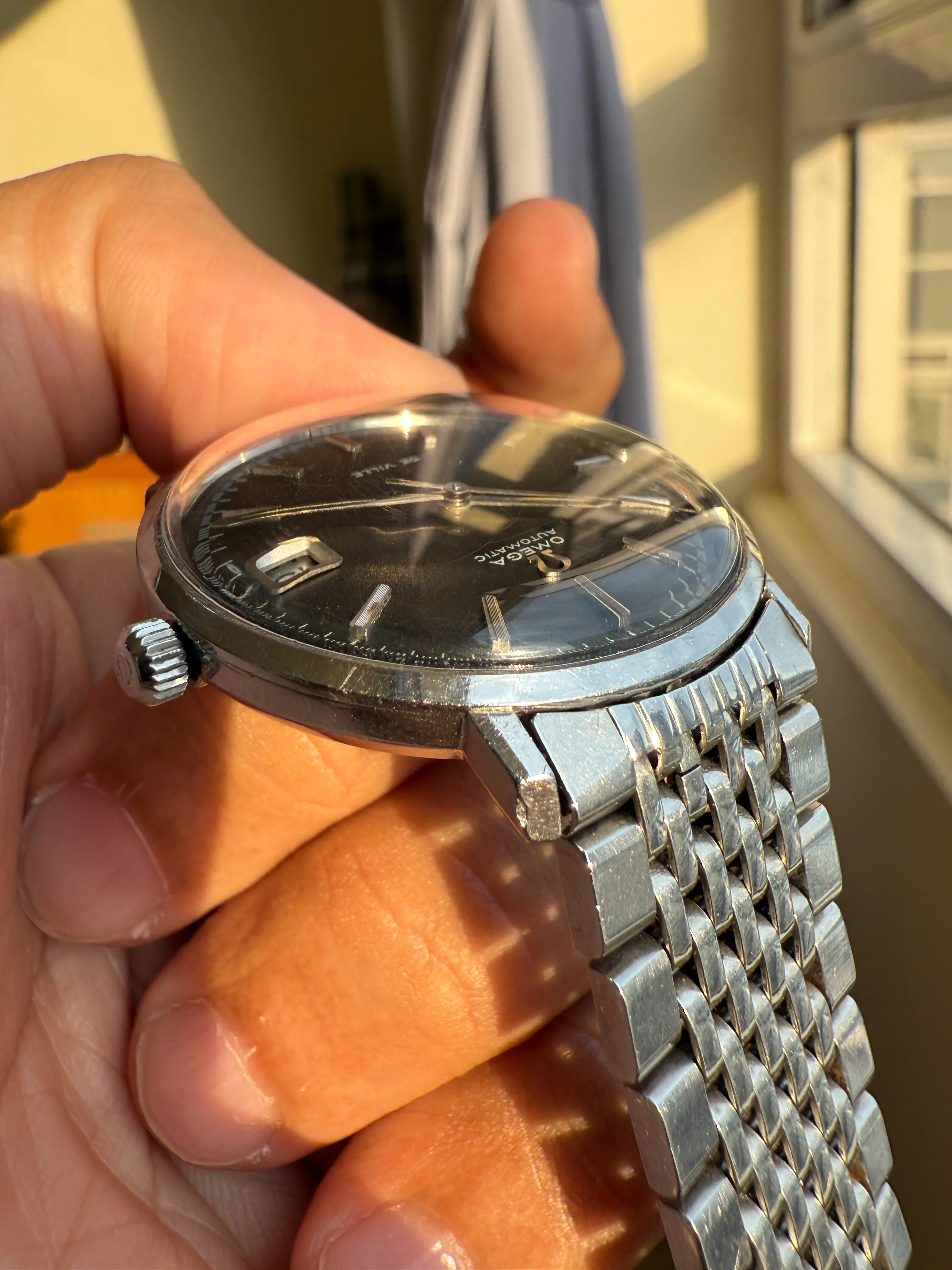 (Price Reduced further) Omega 166.033, Black Racing dial, solid grooved hour markers, BOR, serviced, free ship in EU