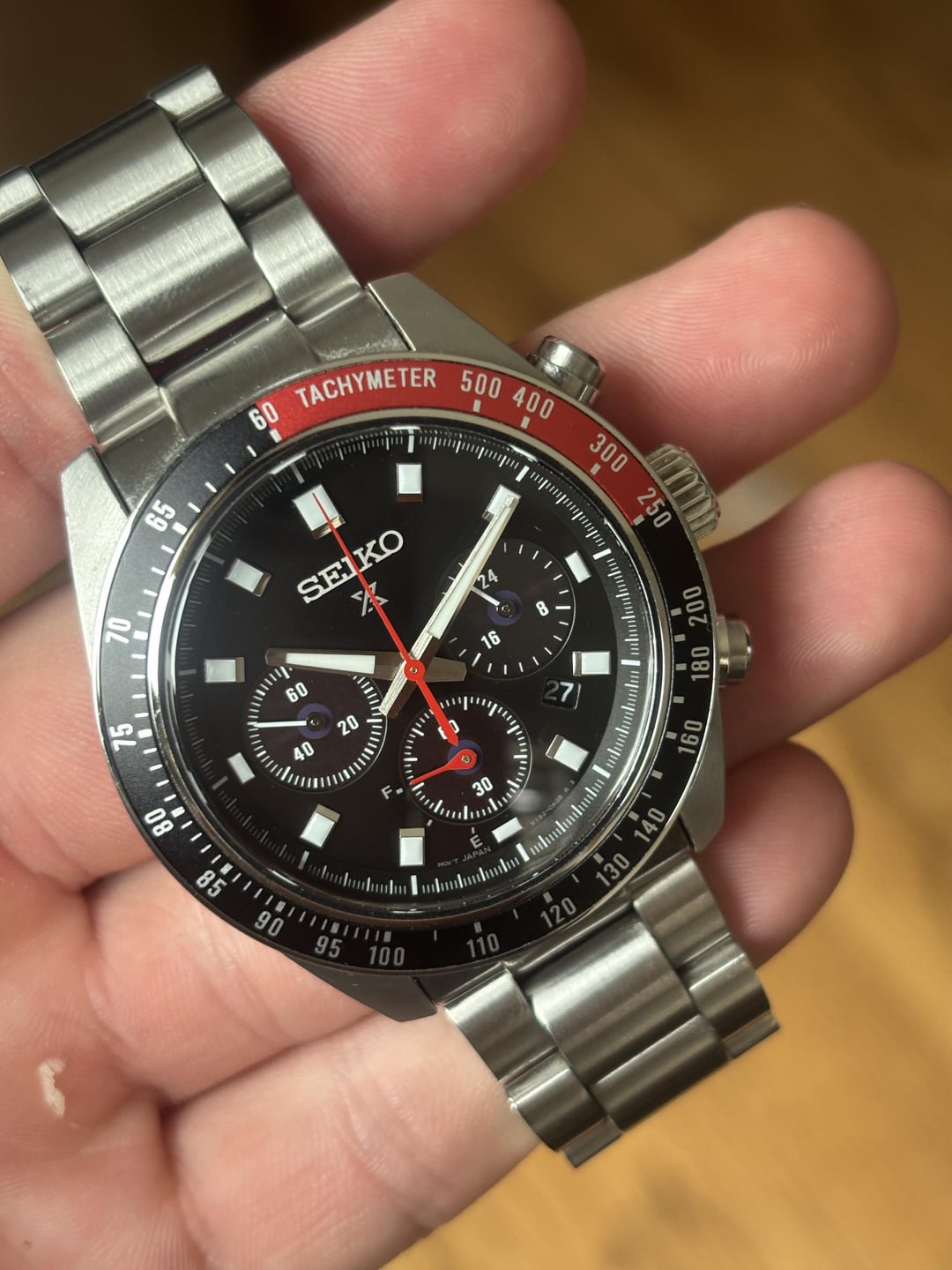 [WTS] Seiko Prospex Speedtimer SSC915 – $295 • Condition: Pre-owned, with extra links. Watch only. • Details: 41.4mm stainless steel case, solar-powered V192 chronograph movement, 100m water resistance, curved sapphire crystal, black dial with red accents, and a two-tone tachymeter bezel.  • Payment: PayPal FF, Wire, Venmo, Cashapp • Location: East Lansing, MI • Shipping: CONUS shipping included; international shipping available at buyer’s expense • Trades: Not accepted at this time • Financing available Let me know if you need further information or have any questions!
