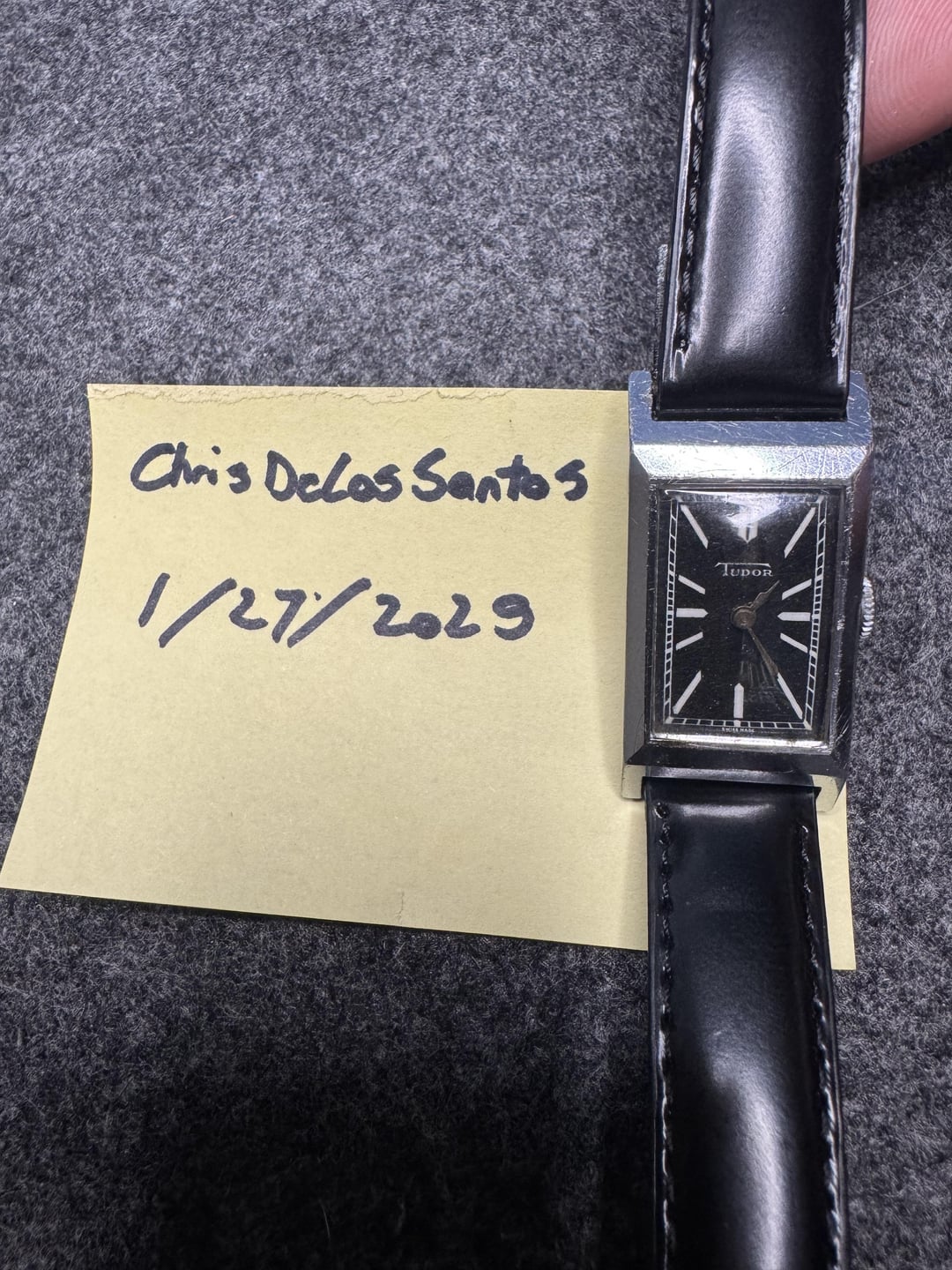 Vintage Tudor Tank / Art Deco -$1,297.97 USD, includes shipping -Year: 1930s -Black dial, black leather strap. -Payment method: Zelle, Venmo, Cashalp, PayPal (if using G&S +4%) -Shipping within the US -Recently serviced, keeps time well -Hand-wound movement It’s a vintage piece back when Tudor and Rolex shared parts and cases.