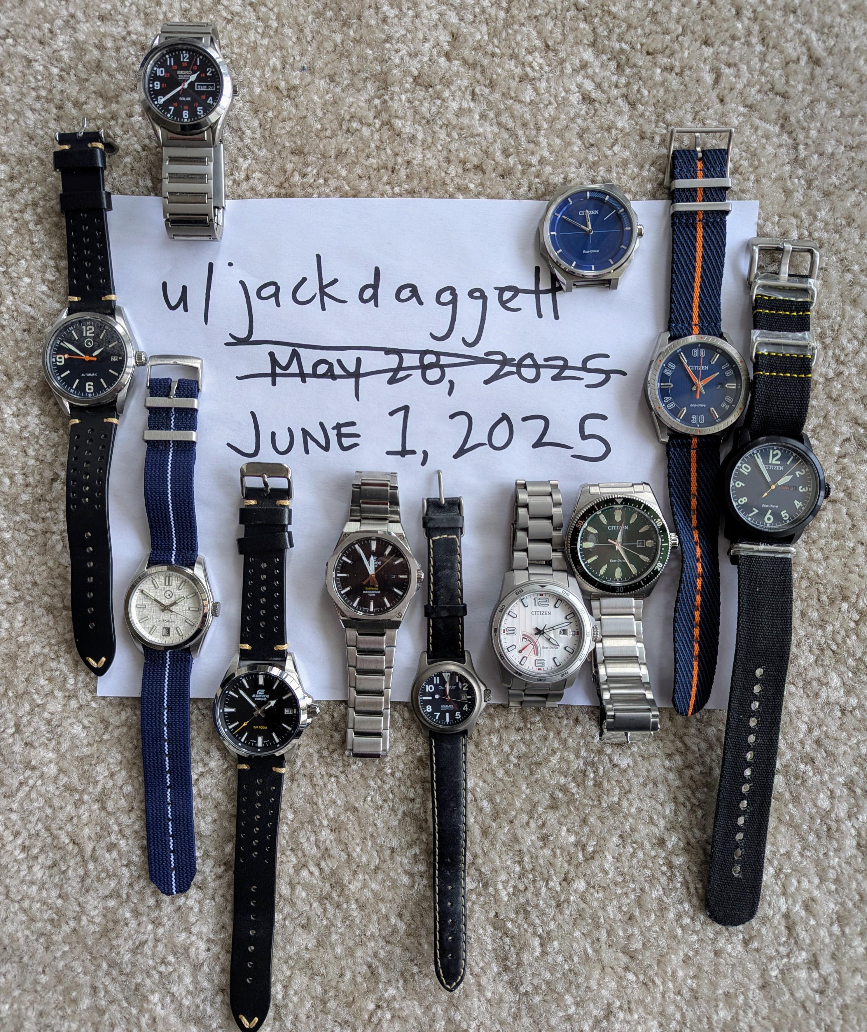 TIMESTAMP: [https://imgur.com/a/C177tRC](https://imgur.com/a/C177tRC) My dad, recently passed, was a great accumulator of watches. Please examine photos closely; questions, extra photos or video calls welcome upon request. Unless noted, all watches (except obvious bracelets) come on generic NATOs, nylon 2-piece, silicone, or leather rally straps as shown. All bracelets are sized for a 7.5 inch wrist, no extra links. No boxes or papers. All watches are lightly worn or unworn outside the house except as noted. Most have minor hairlines on case sides from box storage but all crystals are scratch-free. All except the Momentum came from a smoking home. They have aired out in my nonsmoking home for several months and I have machine washed the nylon straps. All quartz watches have new Renata batteries installed before shipping. All prices are shipped in the US. Open to reasonable offers especially on multiples. I accept Paypal (prices net to me), Venmo, Zelle, crypto, or cash FTF. Under $100 will go by USPS First Class Mail insured, and over $100 is Priority Mail insured. Happy to meet FTF in NOVA/DMV. Sorry, no international shipping.