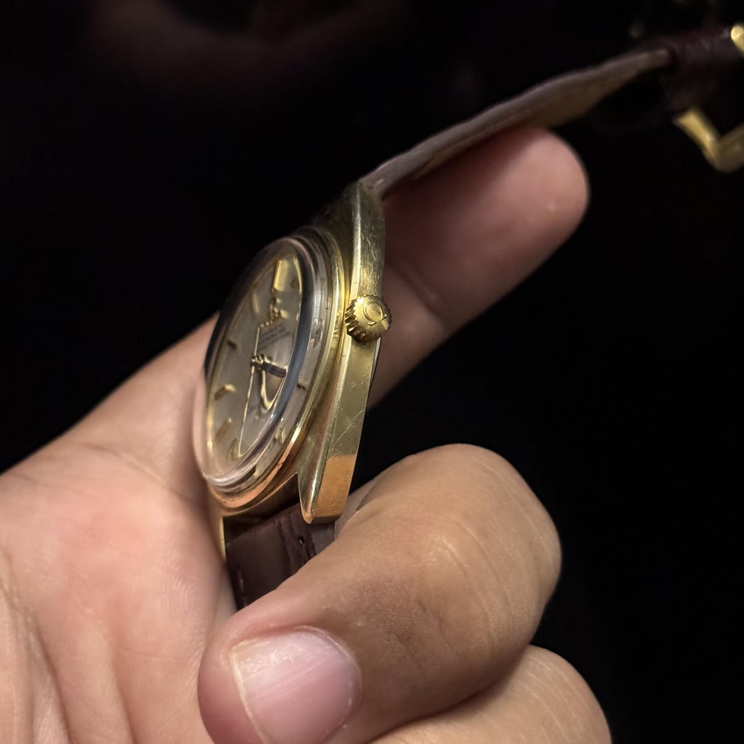 Omega Constellation ref. 168.017 Gerald Genta Design C shaped constellation featuring a 35mm case size which houses a stunning linen dial. Gold plated case that shows light signs of wear considering its age. Omega signed crystal and crown, including a medallion caseback. It is powered by the calibre 564 with quickset date. Runs and keeps time with an unknown service history. Paired with a handmade leather strap with an omega signed buckle. Price: 950$ through wise or Zelle or usdt. Shipped via Fedex conus.