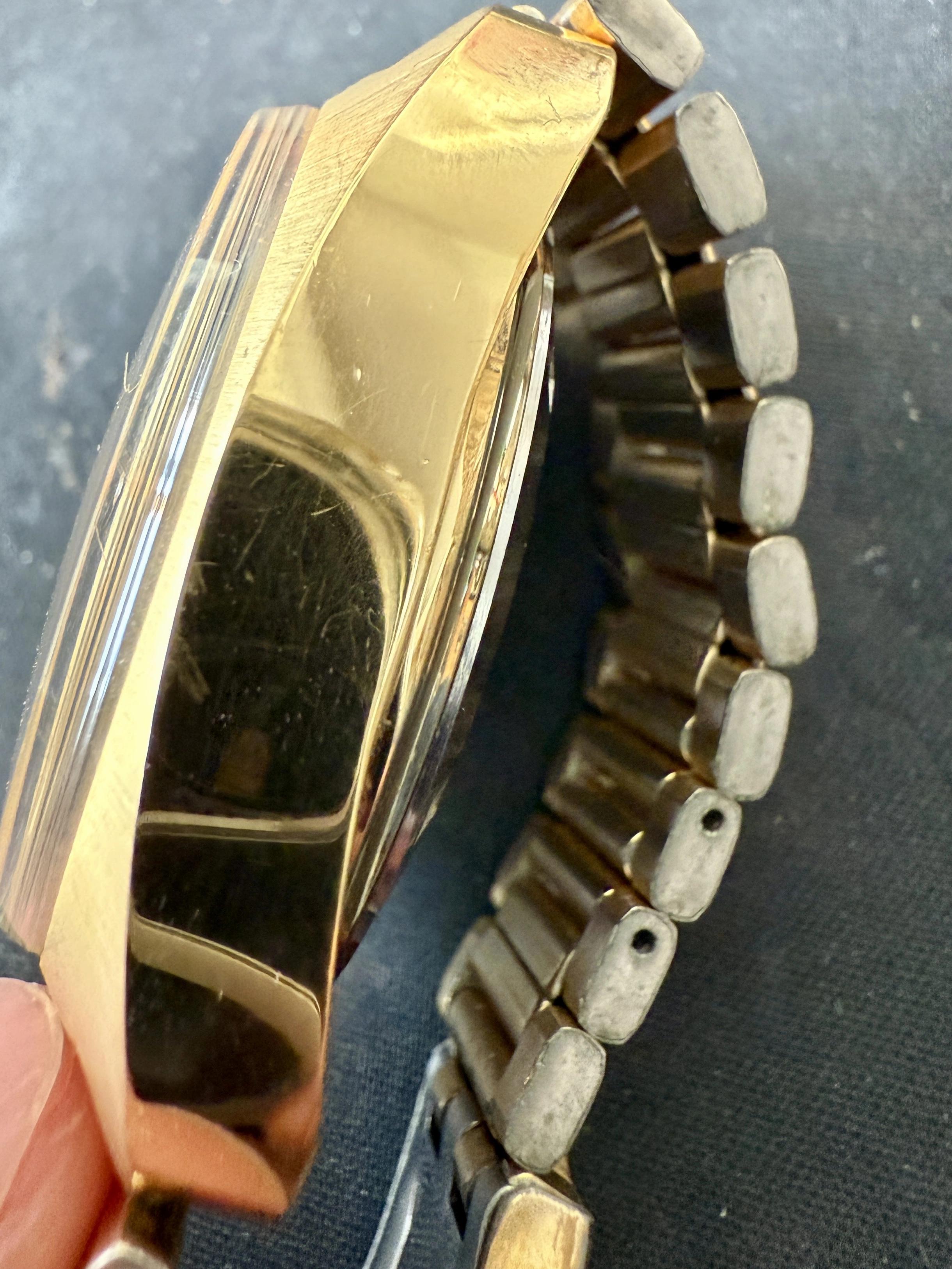 Dial: Original, uncommon champagne/gray iridescent dial (as seen in photos, it in some lights reads gray-gold, in others champagne).