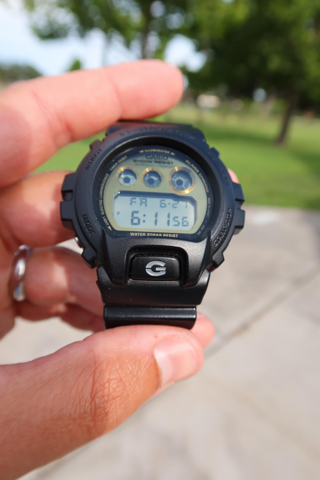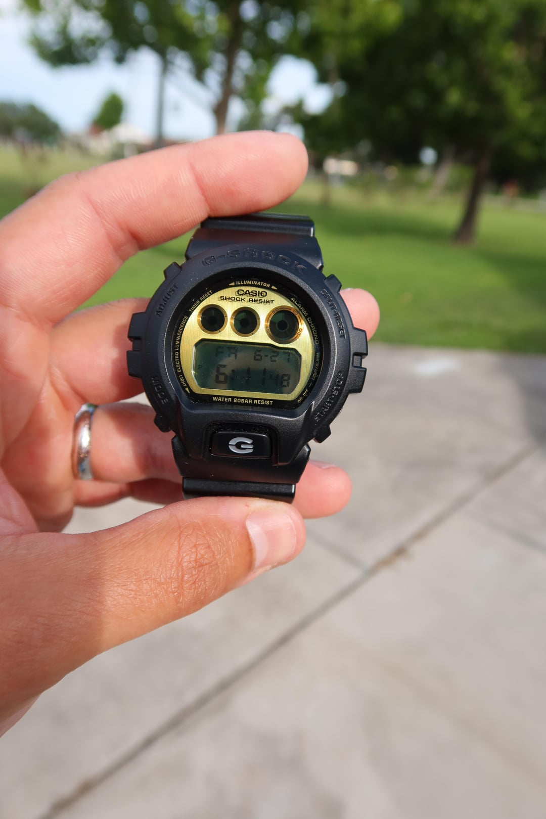 G-Shock DW-6900PL-1. Classic watch. Gold face. $45 shipped Photo Album: [https://imgur.com/a/vrfs3dR](https://imgur.com/a/vrfs3dR) Timestamp: [https://imgur.com/a/3HLdPrU](https://imgur.com/a/3HLdPrU)