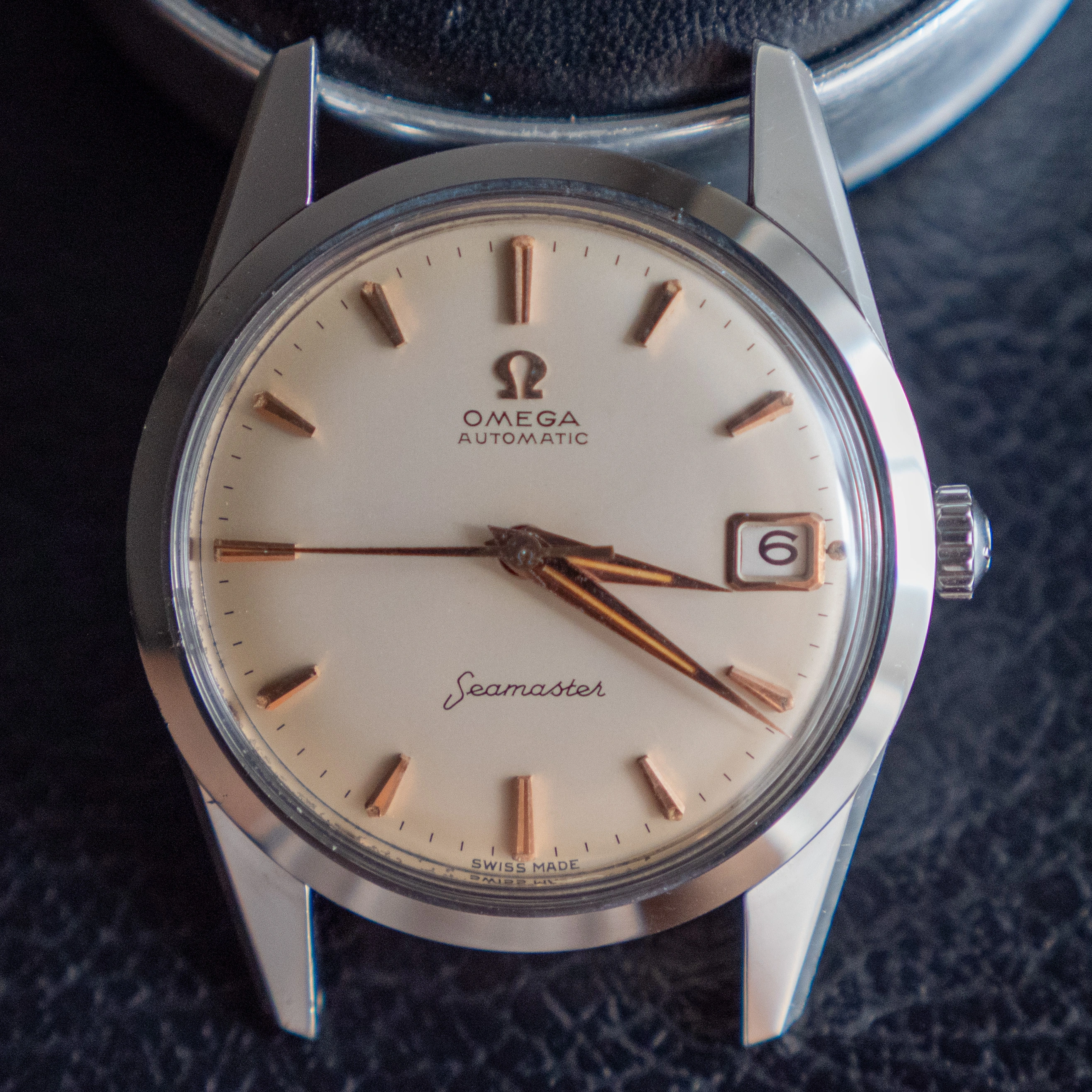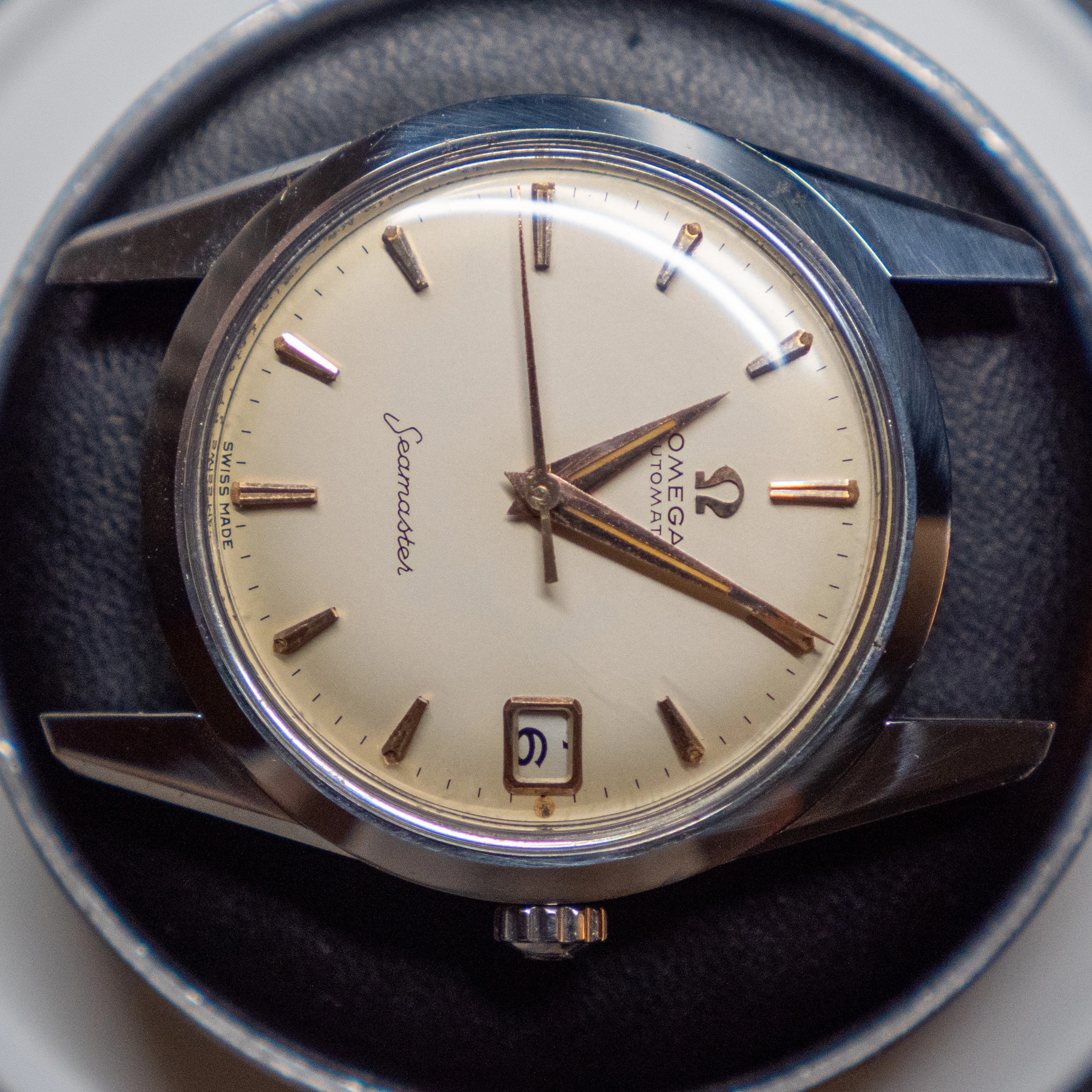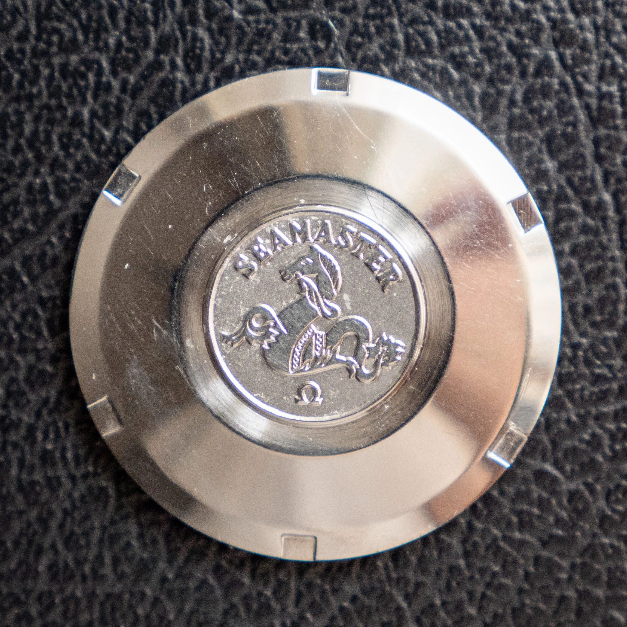 - The glass is an original omega part with the little logo stamped on the center. It has some scuffs around the 2 o'clock position - I havent been able to polish them off.