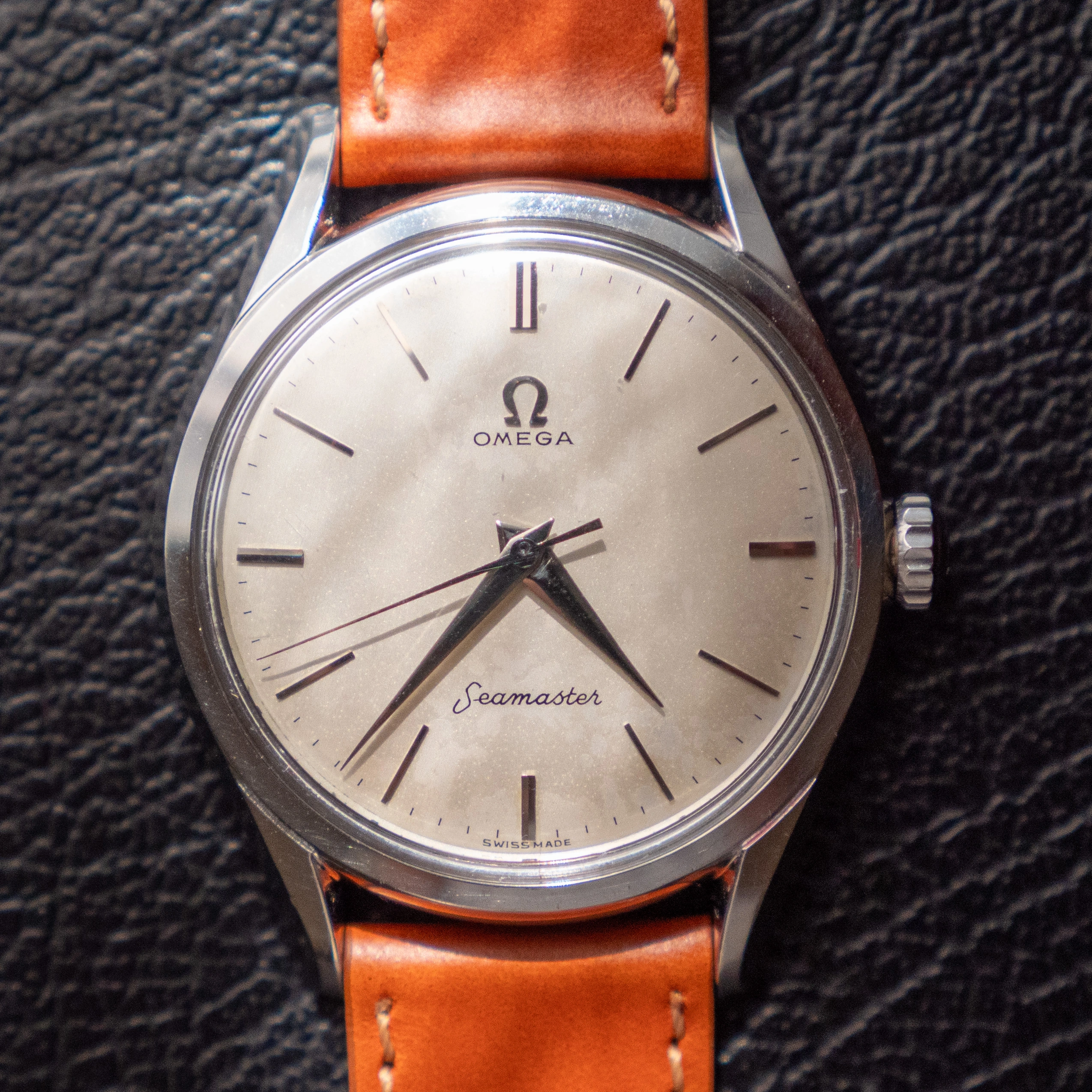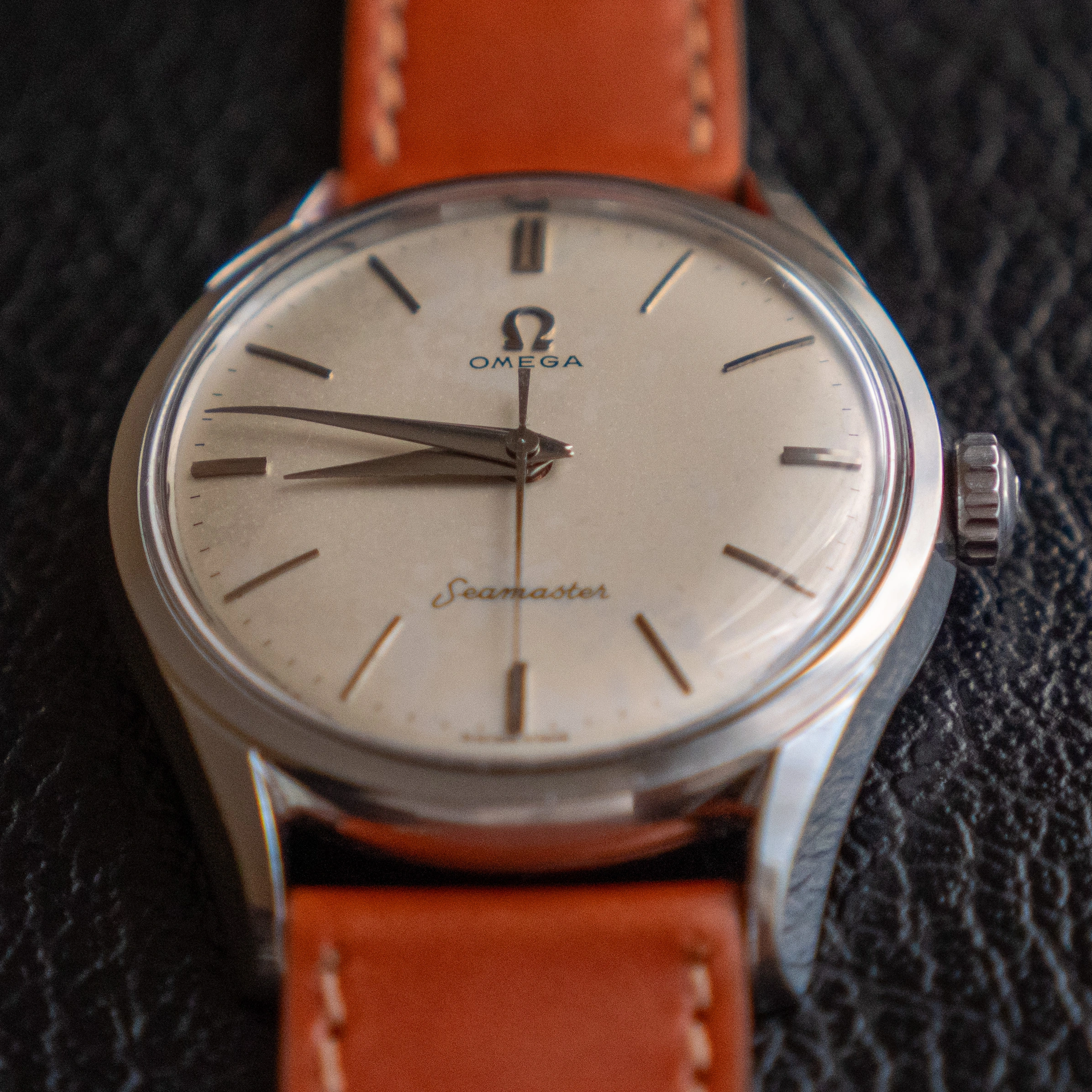 - The glass is an original omega part with the little logo stamped on the center. It has some scuffs here and there.