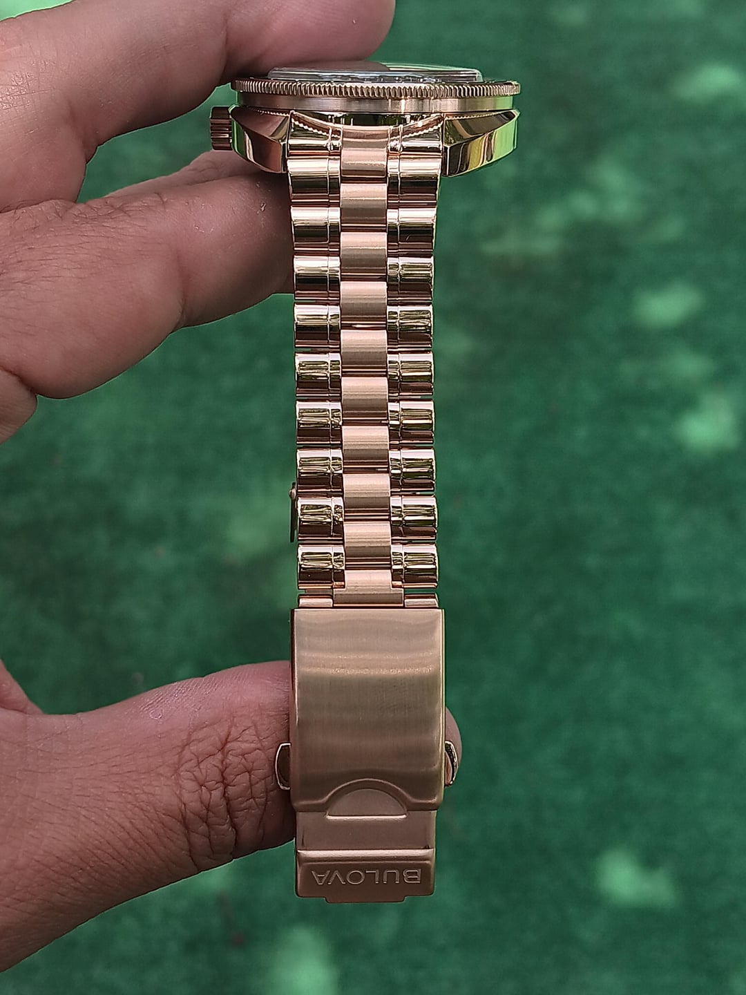 Bulova Mens Oceanographer Automatic Rose Gold Stainless Steel Watch 41 MM 97B215