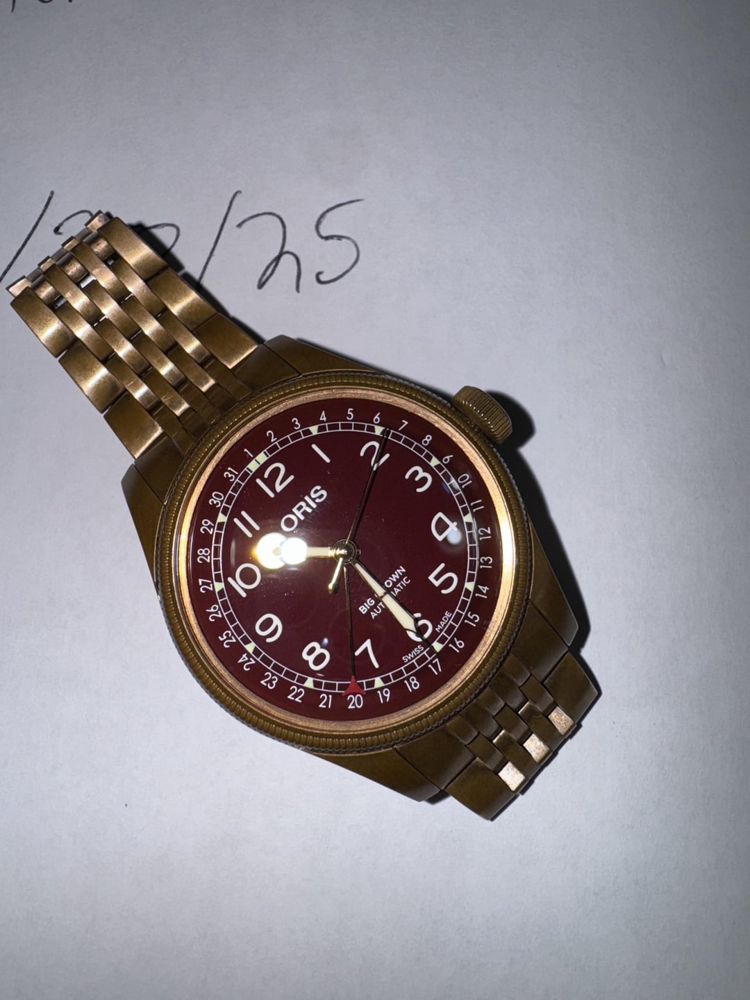 Hello Watchex, Looking to sell this beautiful Oris BCPD bronze with oxblood dial. Watch includes the original box and an additional Oris brown strap. Will also include all links. Priced to fly at $1,300.00 shipped conus!