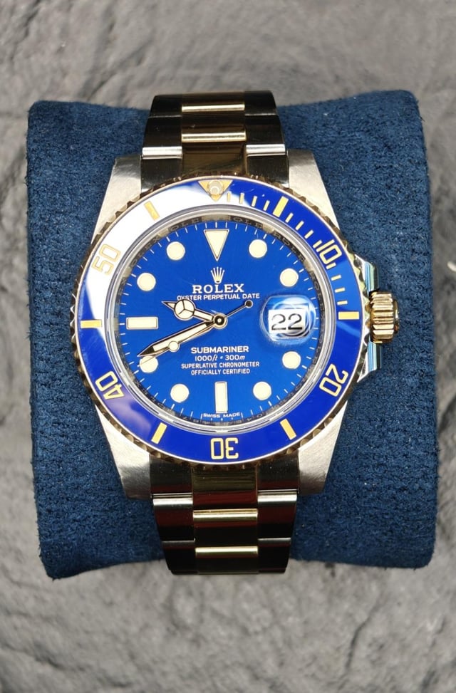 | Rolex Submariner 'Bluesy' FULL SET BOX AND PAPERS Two-Tone Yellow Gold 116613LB thewatchguyllc (183) |