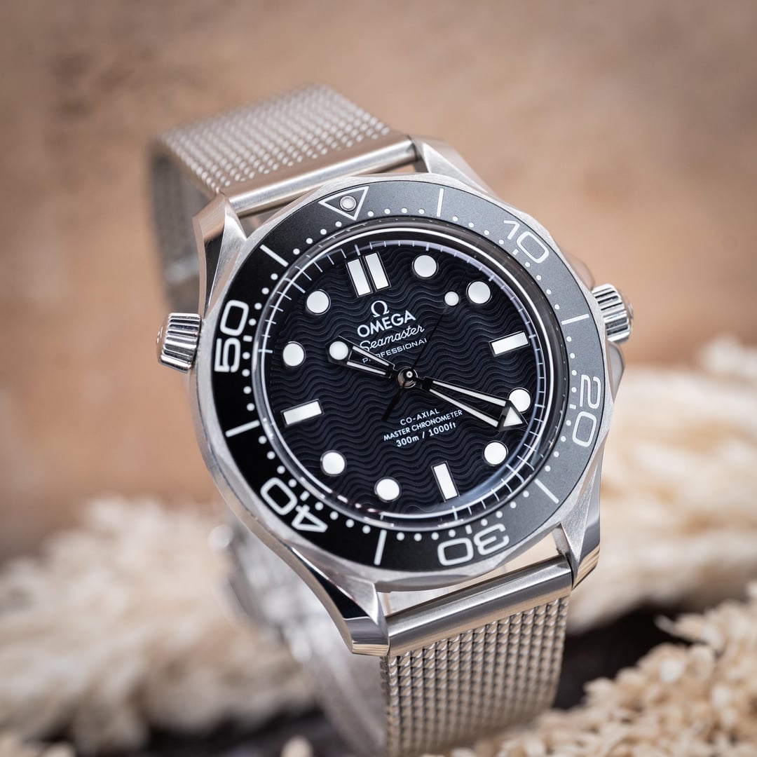 [WTS] 2025 Omega Seamaster Diver 300M Black Dial "New Wave" Milanese Mesh Bracelet Complete Set - 210.30.42.20.01.010