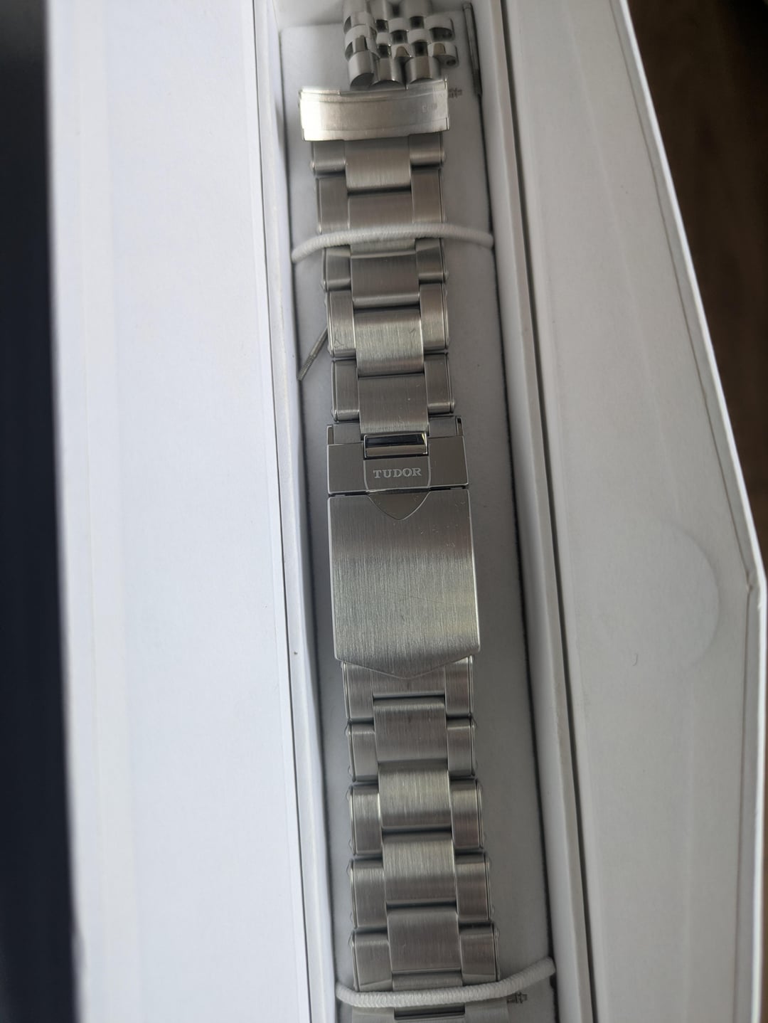 For sale is my Tudor Black Bay GMT (M79830RB), the versatile travel watch with the iconic red/blue “Pepsi” bezel and in-house MT5652 movement. This is the original 41mm model with a robust stainless steel case, 200m water resistance, and 70-hour power reserve. This watch comes as a complete set from the UK AD, including: - Original Tudor stainless steel bracelet (full links) - Forstner jubilee-style bracelet (excellent fit & comfort) - Box, booklet, warranty card (dated) Excellent overall condition with only light marks from careful use (see photos). The only marks you'll notice are on the front lugs, caused by an unskilled jeweller when swapping the bracelet for the Forstner jubilee. The rest of the case, crystal and bezel insert are perfect. Runs well within spec. Never polished. Selling because of a collection reshuffle - I need to downsize it. UK sale only - shipped via Royal Mail Special Delivery, fully insured.