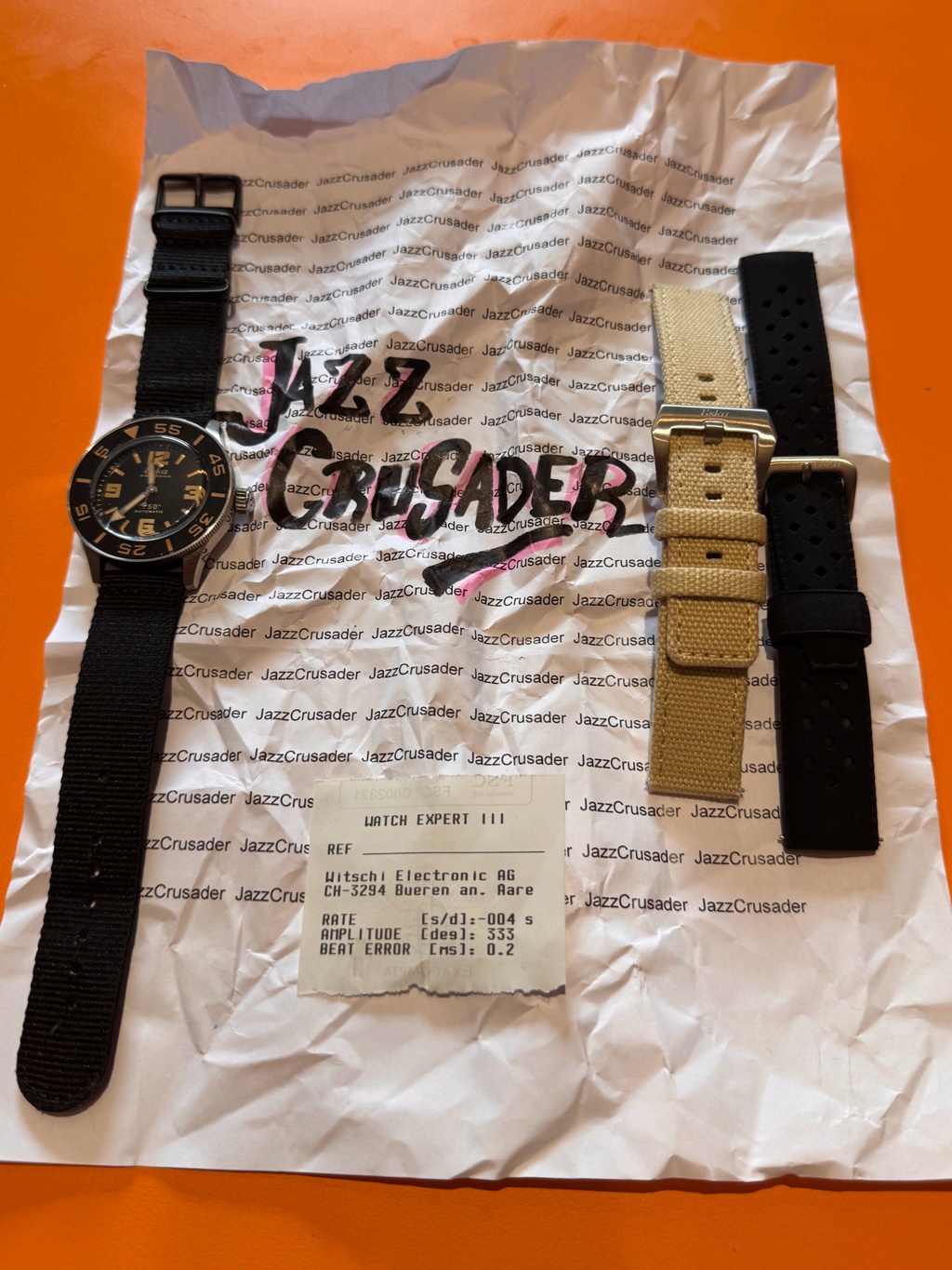Je vends mon ESKA Amphibian 250 Black Sea (sold out, calibre NH38), full set avec 3 straps.