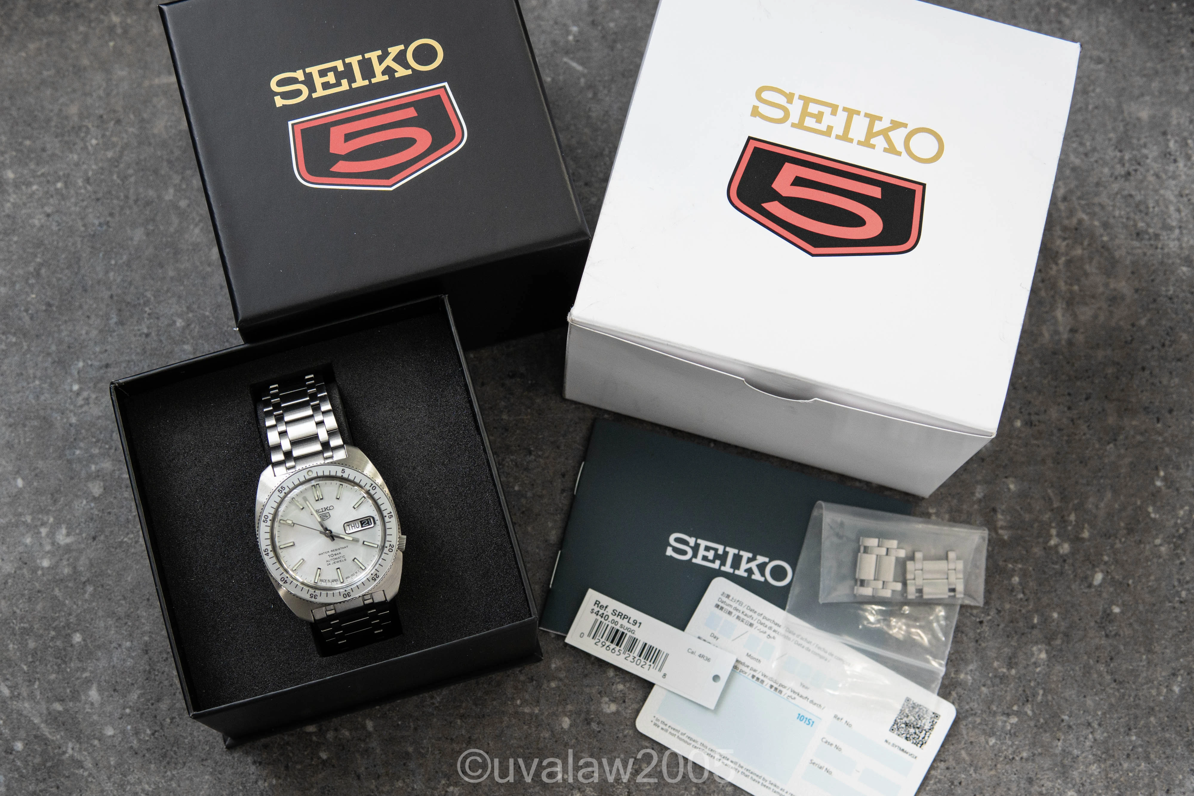 For sale is my Seiko SRPL91 silver dial Gene Kranz in excellent condition with light surface wear. Dial and caseback marked made in Japan. Complete kit with inner/outer boxes, manual, hang tag, blank warranty card, and all bracelet links.