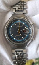 SEIKO 5 SPORTS SPEED-TIMER FLYBACK 7015-8000 Vintage Seiko 5 Sports Speed-Timer 7015-8000 Flyback from the 1970s, in original condition. Automatic 21 jewels cal 7015A movement. Superb chronograph with rare blue dial in fair condition. Original hardlex crystal, original dial & hands, original pushers & crown. Day-date window at 3 o'clock position in English & Kanji languages. The stainless steel case and bracelet have been delicately polished with normal signs of age and use. The original signed stainless steel bracelet fits 7 5/8 inch wrist. The watch runs perfectly and the chronograph works properly. Size: 39 x 45mm. \- Delivery Time: 4 - 10 days (via DHL Express) We combine shipping. Terms & Conditions We are dealing with pre-owned/ used/ vintage timepieces. Our items are 100% authentic. All photos are taken by us. Buyers will receive the same item that is shown in the photos. We provide a full description and many photos of the item and we expect you to contact us for extra details. Shipping We ship international expedited shipping via DHL with tracking. Phone number is required by DHL for shipping. We ship from Lebanon. We combine shipping. We are not affiliated in any way with any of the presented brands. Buyer will have to pay any custom fees for releasing the item in their own country, this will effect delivery times. Check the custom fees in your country before you buy.