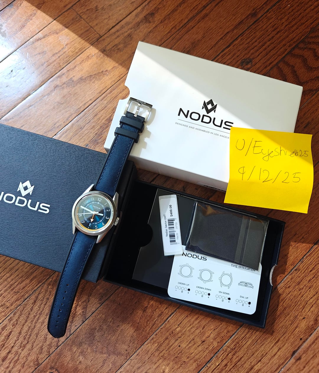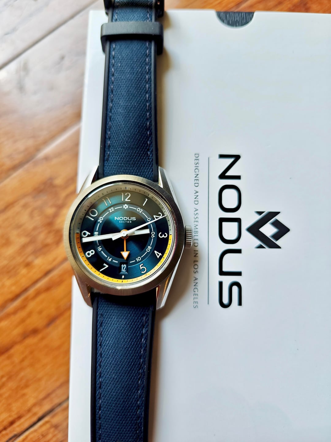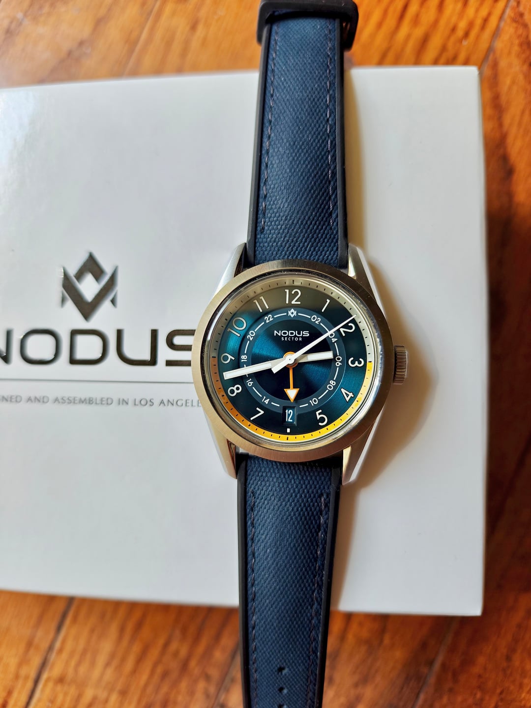 Hello all and welcome to my sale post! Up for sale is a cool watch from the micro brand Nodus. This is the Nodus Sector II GMT, with the Pacific blue dial and a hybrid rubber/fabric strap that is great to wear. The Sector II GMT is designed and assembled in Los Angeles. This watch is in near mint condition. There is light scratches from handling, and from the occasional wearing. The watch will come with box, papers, tag, and cleaning cloth. -Reference: Sector II GMT Pacific -Size: 38mm -Movement: Seiko NH34 automatic -Strap: Original strap -Watch with box, papers, tag, and cleaning xloth Price here at $335 shipped anywhere in the continental U.S. No trades sorry! I take Zelle (preferred), or bank wire as payment for higher priced items. Paypal F&F/Venmo can be an alternative if you have feedbacks on this subreddit. I have 100+ confirmed transactions on watchexchange, and many more on other platforms. Buy with confidence!
