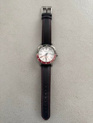I'm selling this Magrette Moana Pacific Waterman Titanium to fund another purchase. The watch is like new. I wore it 2-3 times. Comes with full kit and optional titanium bracelet and extra strap. The bracelet is and rubber strap are unworn **MOVEMENT**: Miyota Cal. 9075 automatic GMT with jumping local hour hand **CASE DIMENSIONS**: 40mm excluding crown, 49mm lug-to-lug, 14mm tall, 20mm lug width **CASE FINISH**: Grade 2 Titanium, brushed, with deeply engraved case back illustrating world time zone offsets **BEZEL**: Polished black+red ceramic, fully lumed with Swiss Super-LumiNova® C3 green **CROWN**: Screw-down crown, signed with Magrette shield **CRYSTAL**: Sapphire (box style), anti-reflective coating **DIAL, HANDS & BEZEL**: Contrasting Swiss Super-LumiNova® BGW9 blue (local time) and C3 green (GMT time) **WATER-RESISTANCE:** 200M water resistance. Viton® gasket used on case back. **STRAP**: FKM rubber strap (standard) Grade 2 Titanium bracelet, brushed, with signed butterfly clasp (optional). You can find details of the watch here - [Magrette Moana Pacific Waterman GMT](https://magrette.com/shop/moana-pacific-waterman-gmt-titanium-2?in=370040261) I'm asking **$625** shipped CONUS. Zelle, PayPal F&F, and Venmo with good transaction history. No trades so no need to ask! Let me know if you have any questions. Happy to do FaceTime or provide more pics upon request.