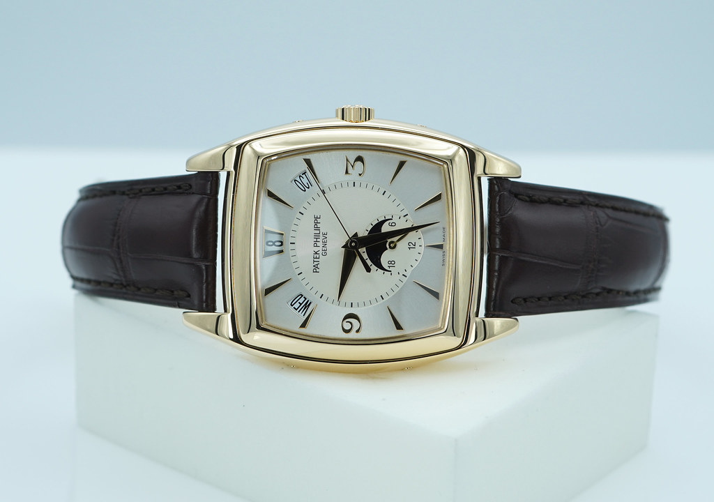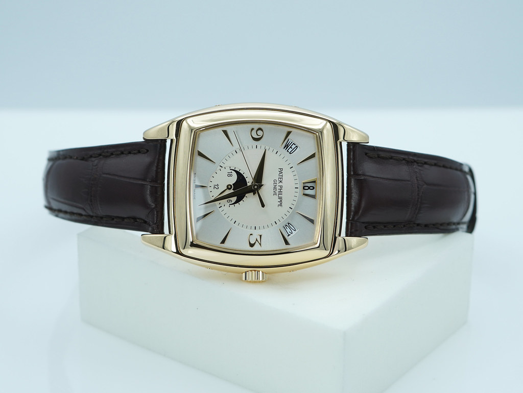 Hi, Selling An Excellent Condition & Very Beautiful Patek Philippe 5135J Gondolo Annual Calendar Moonphase 18K Yellow Gold Case with White Silvery Dial. It's on Brown Alligator Leather Strap with YG Patek Philippe Tang Buckle. Automatic Movement Сalibre 324 S QA LU 24 H with Power Reserve 45 hours. Purchased from Patek Philippe Authorized Dealer in 2005. The watch just received Complete Services from Patek Service Center NYC in 01.2025. Watch running perfect with Non Issues. Boxes & Papers. Under Factory Warranty until 01.2027.