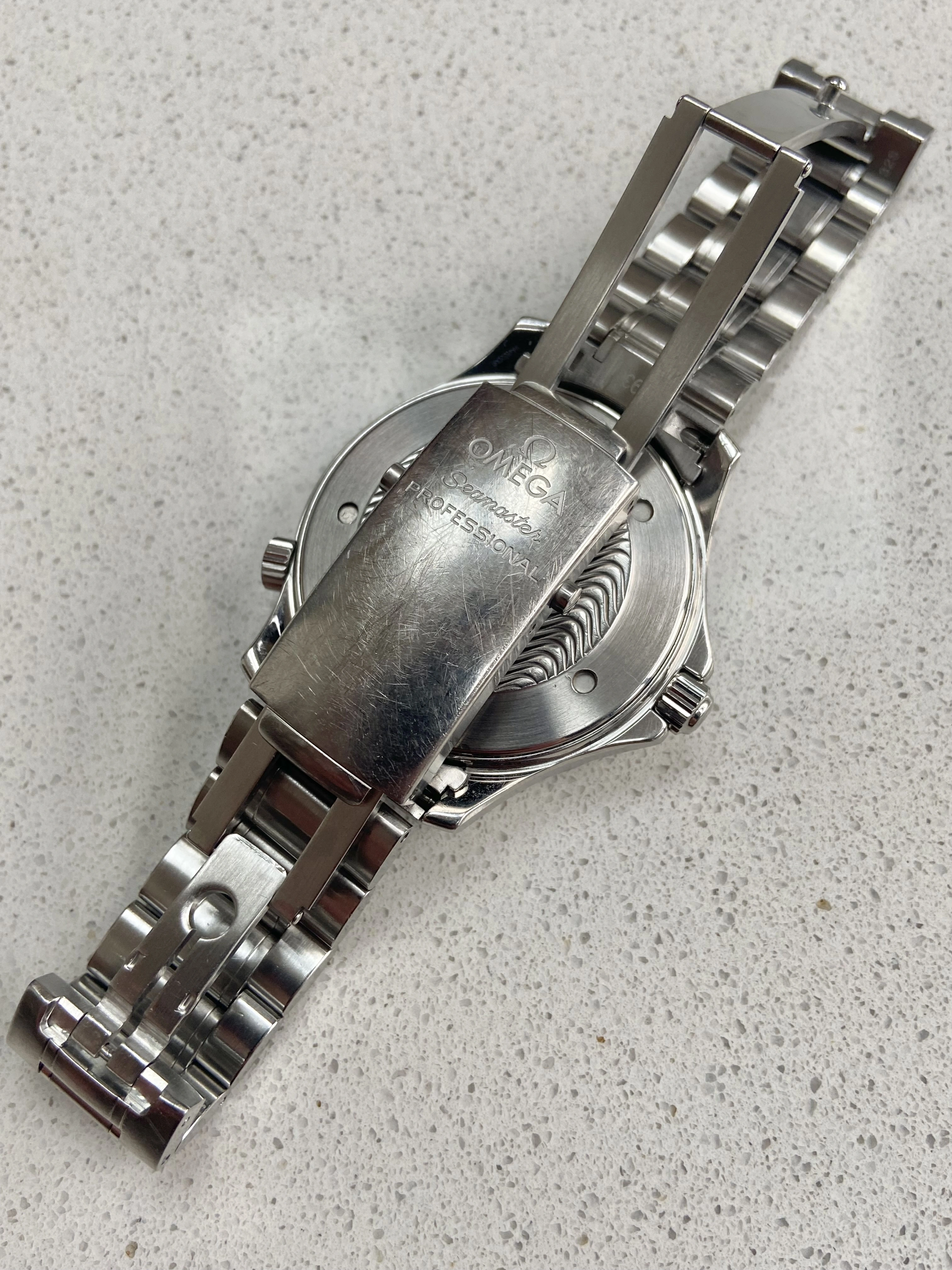 Original 1610/930 bracelet. Clasp opens/closes securely as does the divers extension. The bracelet is quite short so extra links will be needed for larger wrists. I haven’t worn it on this bracelet so I’ve never bothered getting it made bigger.
