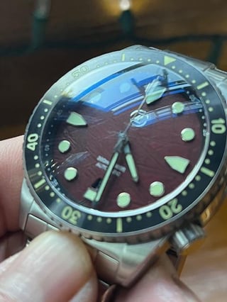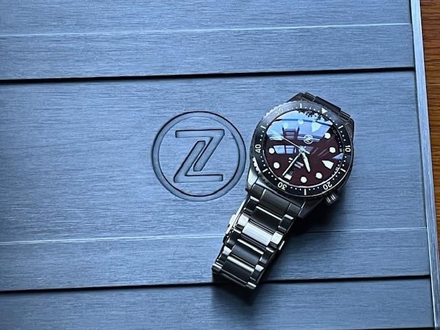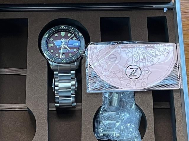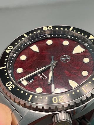 Selling my Zelos GW Blood Moon (red meteorite dial) watch. This is a limited edition (only 200 were made) and it has been sold out for many years. I purchased one of the last few ones in 2022, and this is numbered 187/200. It is in good condition with some desk rashes on the clasp and a rash on the side of the case where I had set it down. It was my first Zelos watch and it got me into the brand. It has not gotten much wrist time recently as it is now a bit big for me (43mm case) after some weight loss. The meteorite dial is stunning when the sun shines on it. More information: Meteorite dial with dark red PVD plating. Ceramic bezel Specifications Diameter : 43mm Lug to Lug Length: 50mm Thickness: 12mm without crystal Case: 316L SS with brushed and polished surfaces Lug Width : 22mm Movement: Miyota 9015 with color matched Date Wheel Water Resistance: 300m Crystal: Sapphire with Inner AR coating Lume: C3 X1 and BGW9 Bezel: 120 Click Unidirectional Ceramic Bracelet: Steel Screw Links with Flip Lock and Microadjust clasp. Quick release springbars It will come full kit with the aluminum case, steel card, and the extra links. I am asking $625 OBRO. This will include shipping to CONUS. I accept PayPal F&F, Venmo, and Zelle. Please comment here before sending me a chat.