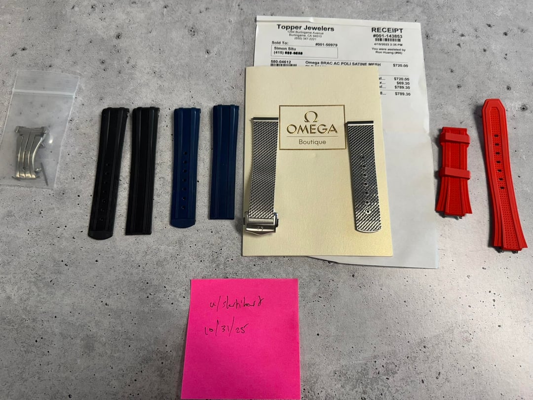 [WTS] Omega Mesh Bracelet, Deployant Rubbers Black and Blue, Zenith Defy Skyline Red
