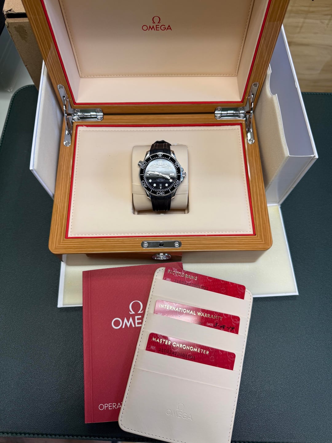 Black - 2019 complete set. Pearl is cracked and insert has a tiny dot. Blue - 2023 watch and cards solid condition. Was serviced by omega, comes with receipt as well.