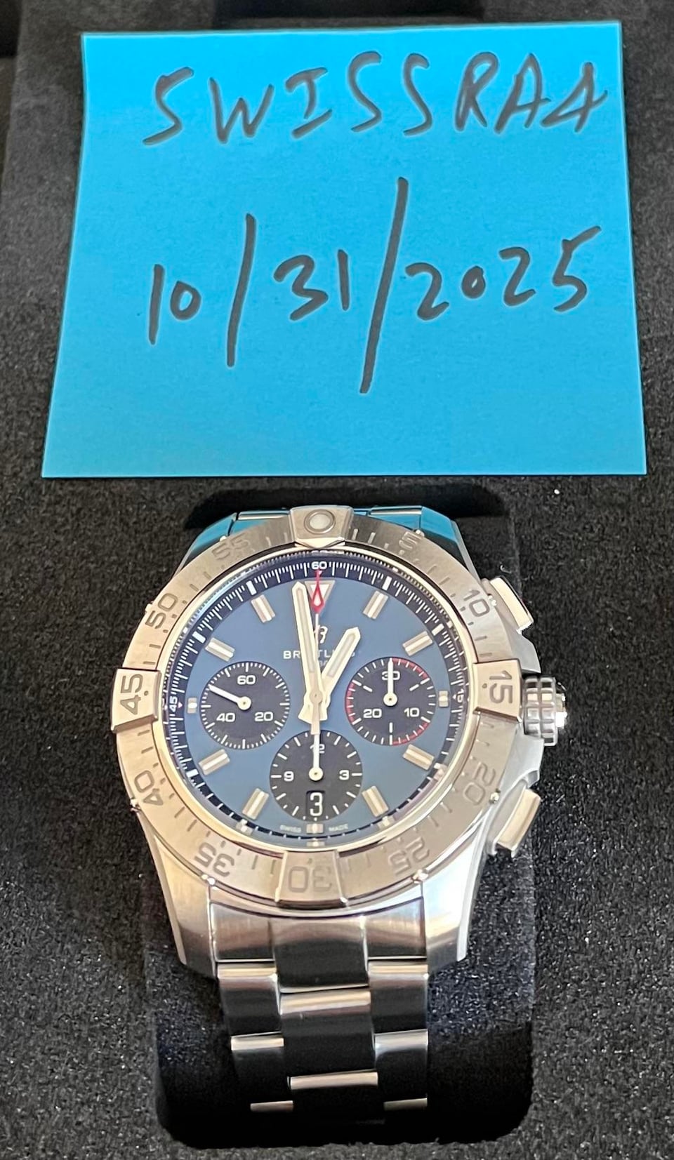 Model: Breitling Avenger B01 Chronograph AB0147 44mm Factory warranty valid through AUG 2031. Mint and full set. $4750 shipped via FedEx anywhere in the US. Payment through zelle, wire, venmo or applepay. NO TRADES. Tons of references/feedback available.