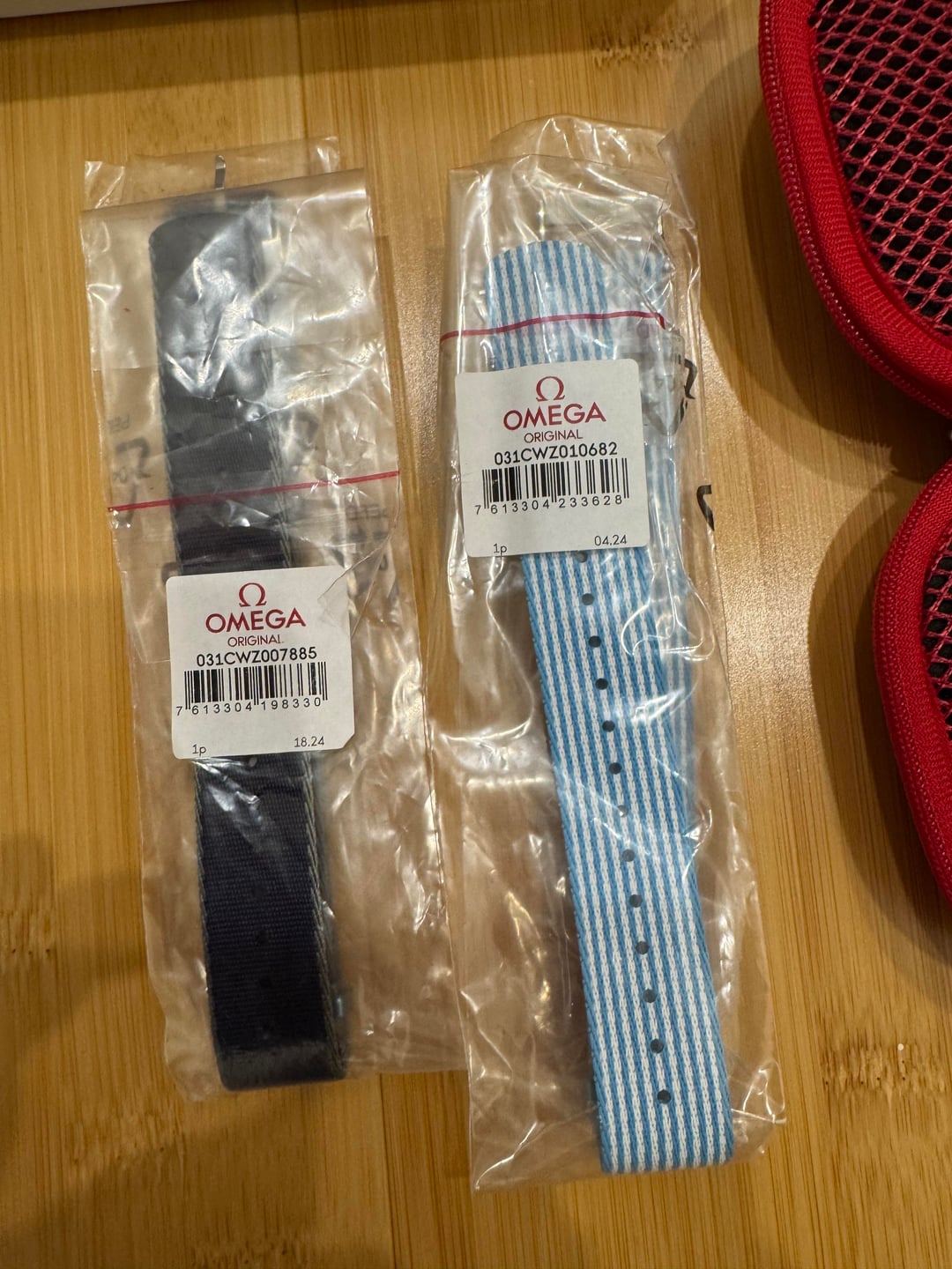 Hi all, I’m selling two, brand new NATO straps that I purchased for my 75th Anniversary Planet Ocean “Summer Blue” watch, ref. 215.30.40.20.03.002. Strap 1) Polyamide, blue and grey 031CWZ007885 Strap 2) Polyamide, blue and white 031CWZ010682 Price: $400 shipped within CONUS after Zelle or Venmo payment. Happy to answer any more questions. Thanks