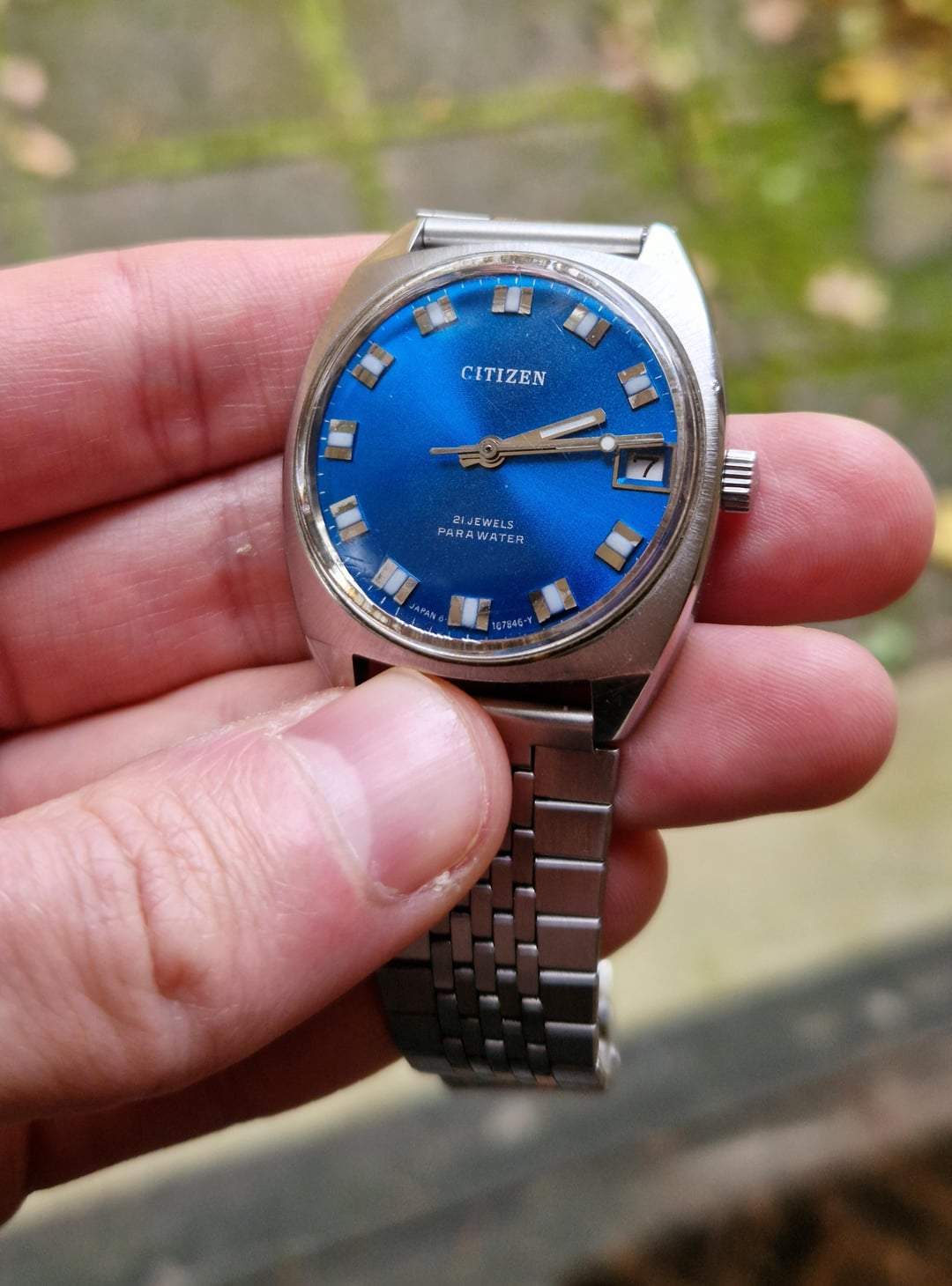 Offering up this vintage Citizen Parawater wristwatch. Good condition with unblemished, stunning blue dial. Manual wind Cal 1800-series movement. Watch is in running condition and keeps decent time. Diameter is 36mm with crown. Also open to offers, feel free to DM me.