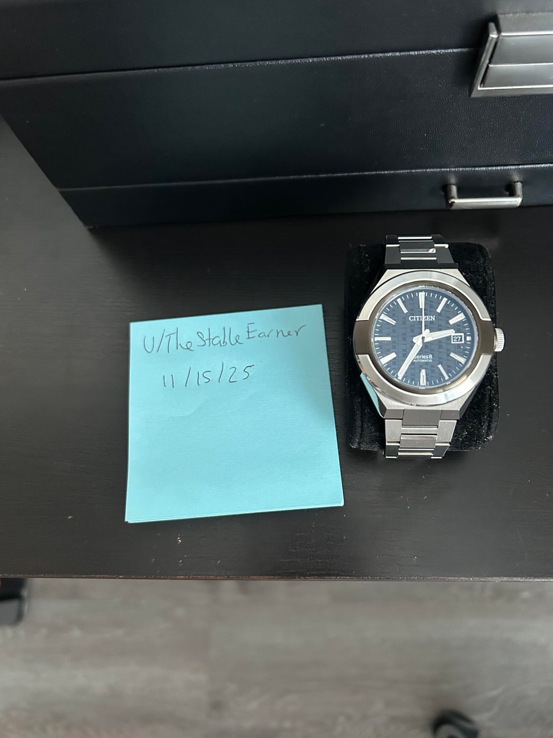 Hello everyone, here I have a pretty special and underrated citizen series 8 watch. The series8 line from citizen is their attempt to enter the higher end watch market very similar to Seiko with the Grand Seiko. These watches are workhouses and have amazing specs- it has a movement specifically developed only for the citizen series 8 line accurate to 5-10 seconds a day and a 50hr power reserve! (And magnetic resistance) The materials and case finishing on this watch is also a step above normal citizen. The crystal is sapphire and has AR coating. And lastly the watch has 100m of water resistance. The watch is in excellent used condition with almost no signs of use and It comes as watch only without any original box or papers. I can include a generic citizen box (the one with the white lid that snaps shut) Price and payment: this watch is priced at $659 shipped within the continental US. Payment via PayPal FF or Zelle please. As I always state, I completely understand that there has been a noticeable rise in scammers within this community lately. I will do my best to make sure you feel as comfortable as possible doing business with me! Please refer to my feedback as well. Thanks for taking a look!