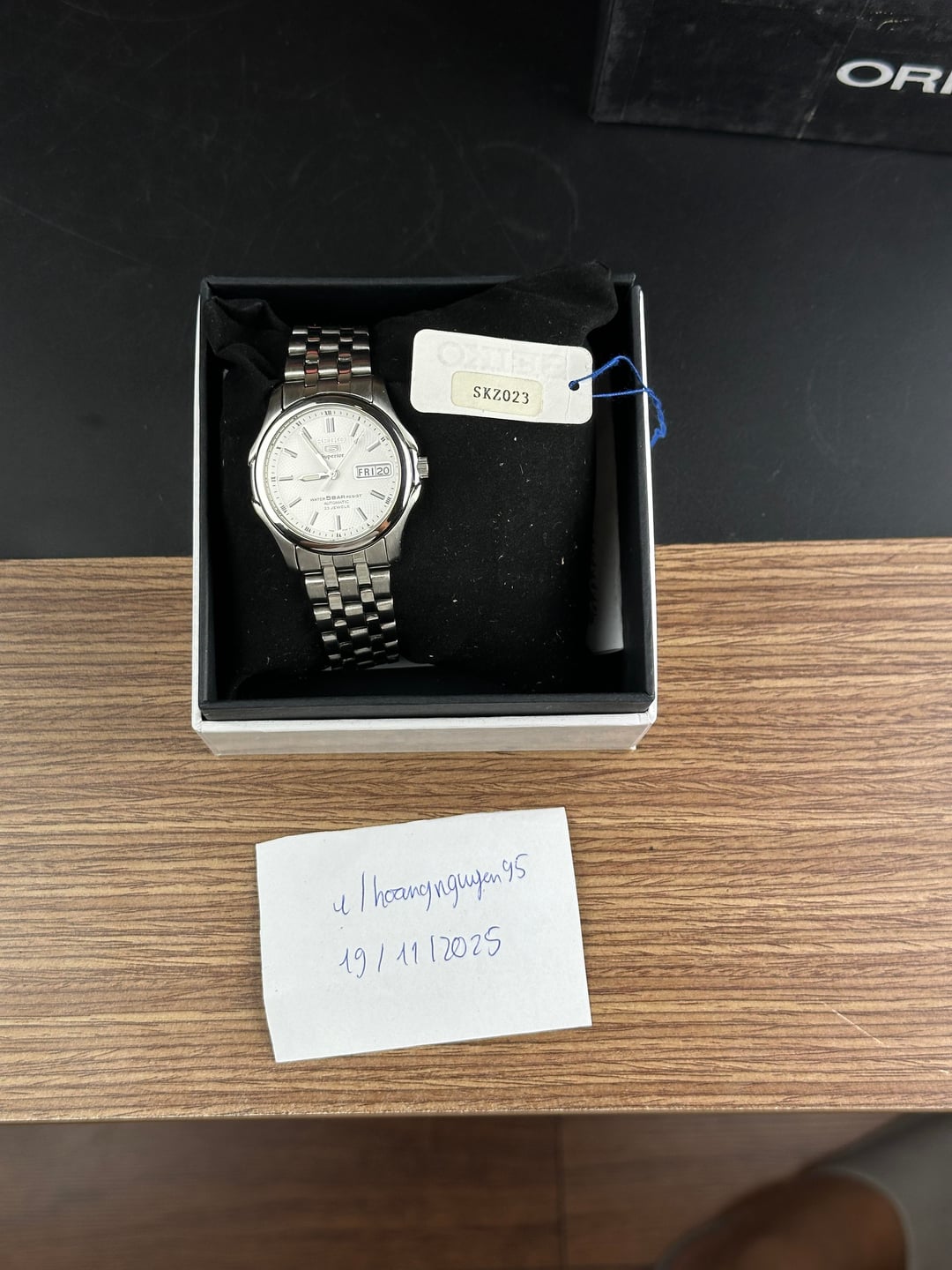 Up for sale is the Seiko Superior White Whirlpool SKZ023 in like new condition. Images: https://imgur.com/a/4l1GjMg Video: https://imgur.com/a/oqWDxIx Timestamp: https://drive.google.com/file/d/1IyZ9VUiUZQT8jIaRqjY0Ot4rzY7205Ur/view?usp=drivesdk The SKZ023 boasts a whirlpool-textured dial, a rare and eye-catching design among Seiko watches. The deep grooves of the texture add extra depth, making the dial come alive as it catches light from different angles. As part of the Seiko Superior line, the watch features an engraved lion caseback — a symbol usually reserved for Grand Seiko and early Seiko chronometer models — highlighting its higher grade over the more common Seiko 5 collection. Case diameter 37mm, lug width 18mm, thickness 10mm The watch is in like new condition with almost no sign of wear, the crystal is flawless and free of scratches, the case and case back are in great shape and show no scratches or dent. The watch has been serviced so it will keep great time (necessary for a watch of nearly 30 years old). Bracelet fits up to 20 cm (8 inches) with tag still hanging and doesn’t show any stretch. Although the watch doesn’t come with original box and paper, a standard Seiko box will be provided upon purchase. Price: $400 + $60 flat shipping (via UPS/DHL express with tariffs and duty fee covered). Payment via PayPal F&F or G&S (+4.6% fee covered by the buyer). Not accepting trades. Feel free to message me with any questions or if you’re interested. Have a great day! Check out my other watches on Instagram: @jasonswatchcorner