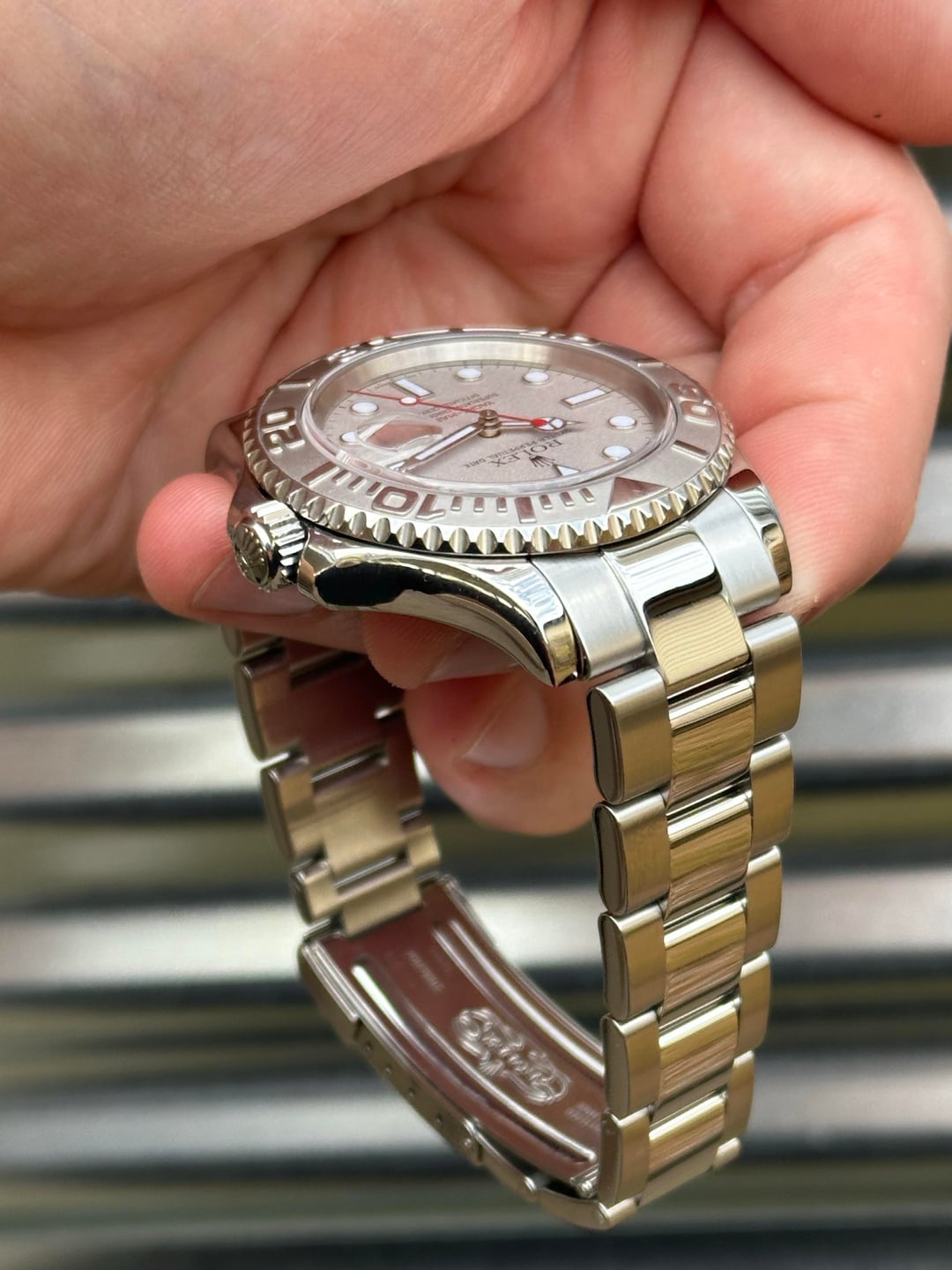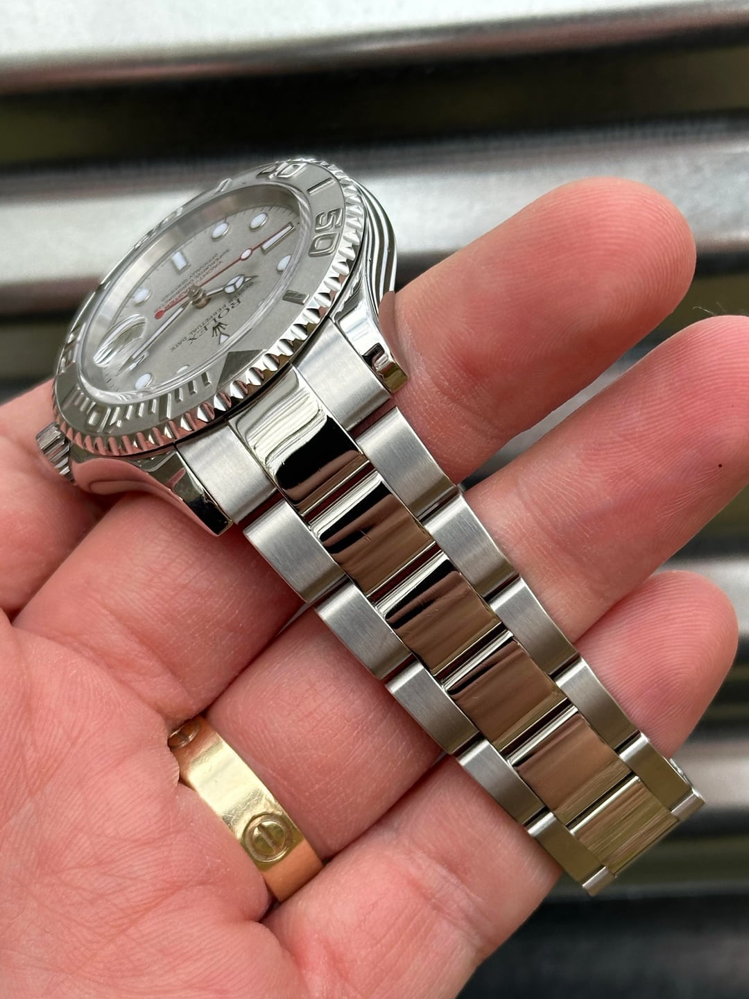 Here we have a very clean platinum Rolex Yacht-Master reference 16622 from 2001/2002. These are honestly so underrated at the moment. For the money you’re getting stainless steel sports model with a platinum dial and bezel. What else could you want? Reference number: 16622 Serial number: Y****** dating it to 2001/2002. COMES with BOX & PAPERS, BOOKLETS, HANG TAG (please see second photo for everything that’s included) 💰9️⃣3️⃣5️⃣0️⃣+✈️🚀 Overall this watch is in excellent shape, i believe the photos speak for themselves! The case is clean all around. Free of any serious dings or dents. Dial and hands are clean with no corrosion. The bezel is in great shape. No scratches or chips on the crystal. Clean finish on the bracelet links. Tight band also.The coronet on the clasp is thick and well defined. The clasp is also clean as well. 11 Links on the bracelet Fits about a 7.25 - 7.5 inch wrist. 💰9️⃣3️⃣5️⃣0️⃣+✈️📦 We accept Zelle/Wire. Shipped with fully insured overnight once payment clears, NO EXCEPTIONS. We have plenty of references across different platforms. Follow us on IG for more deals: @215watches [photo album](https://imgur.com/a/x0LRT56) [time stamp](https://imgur.com/a/ZwkBG6s)