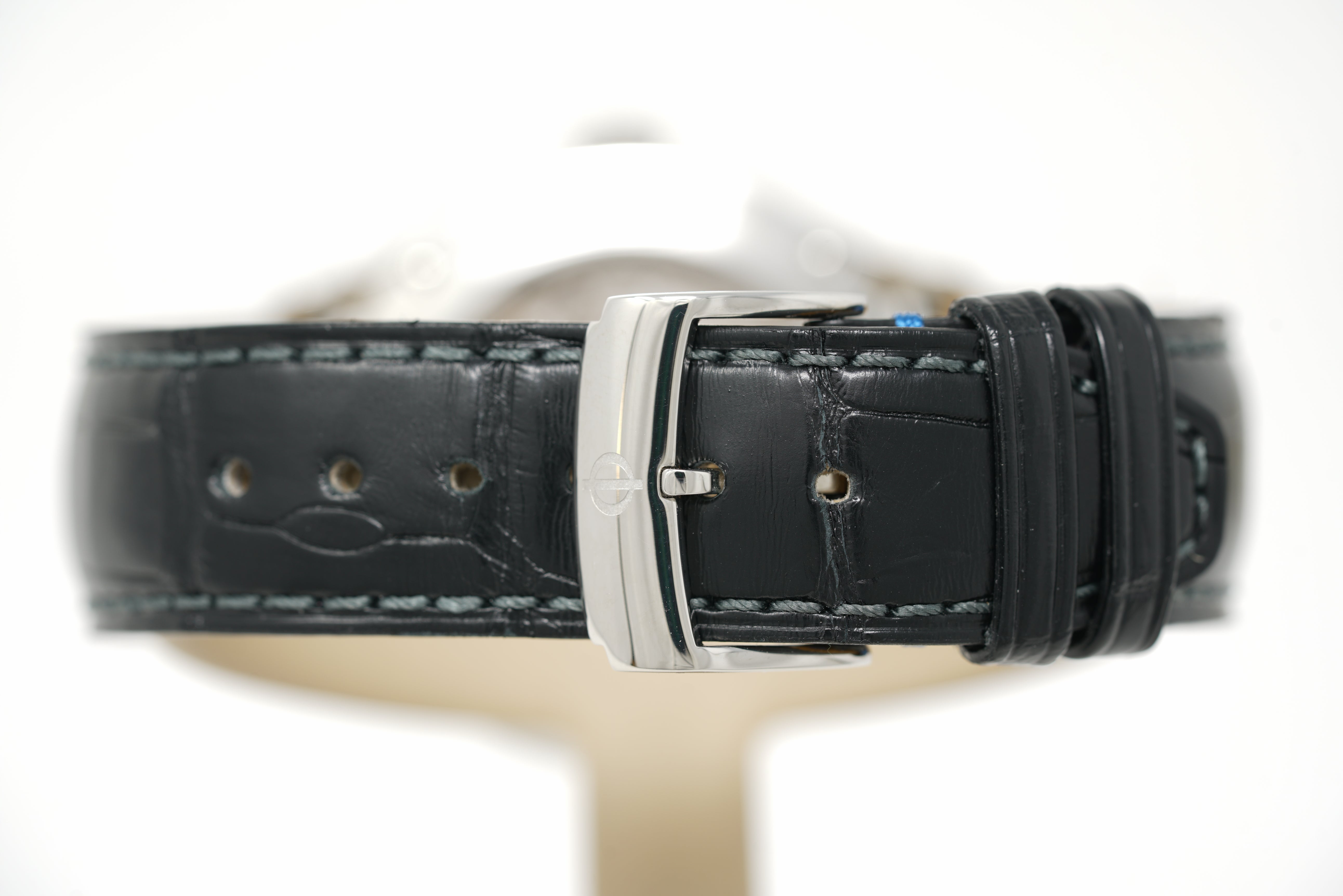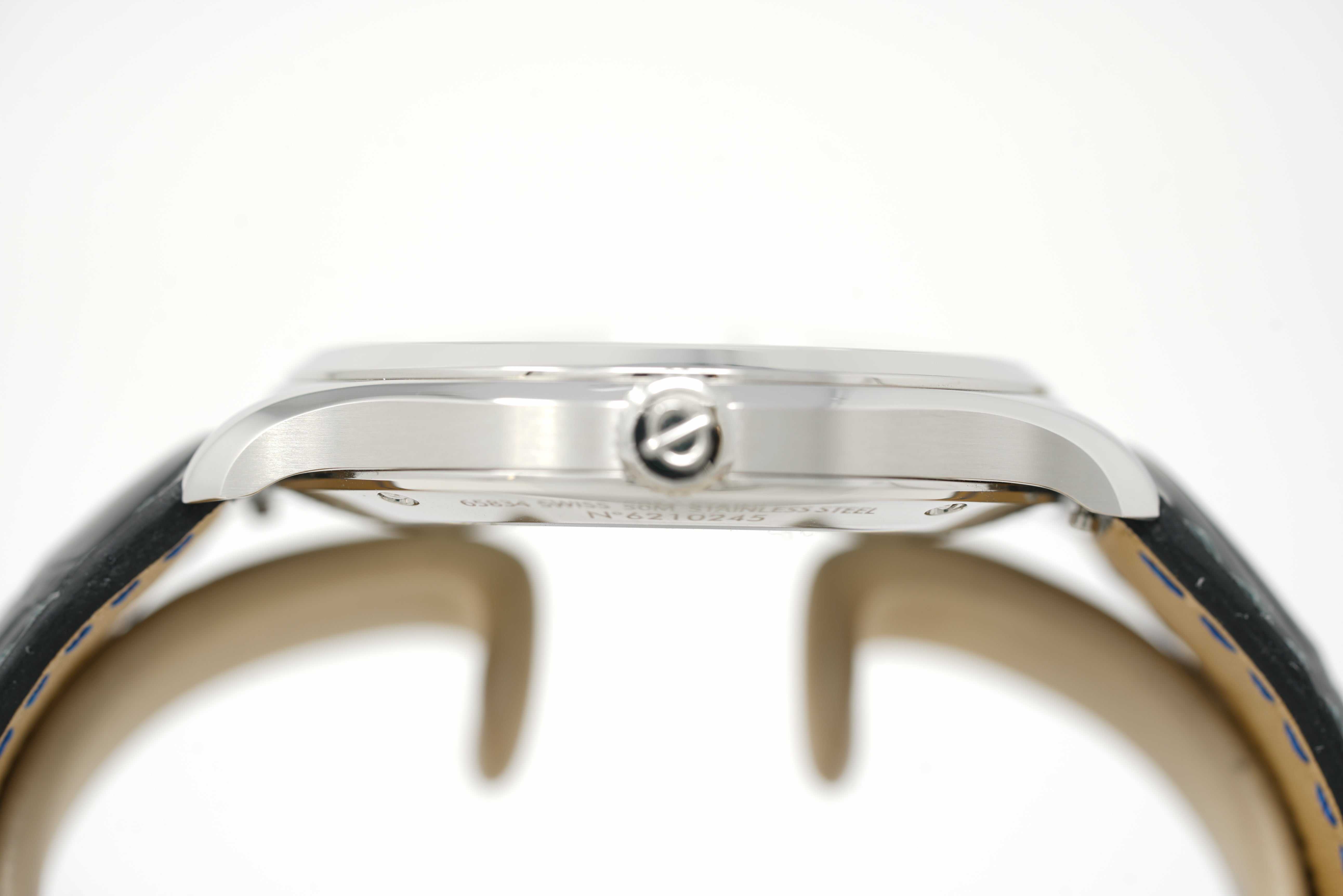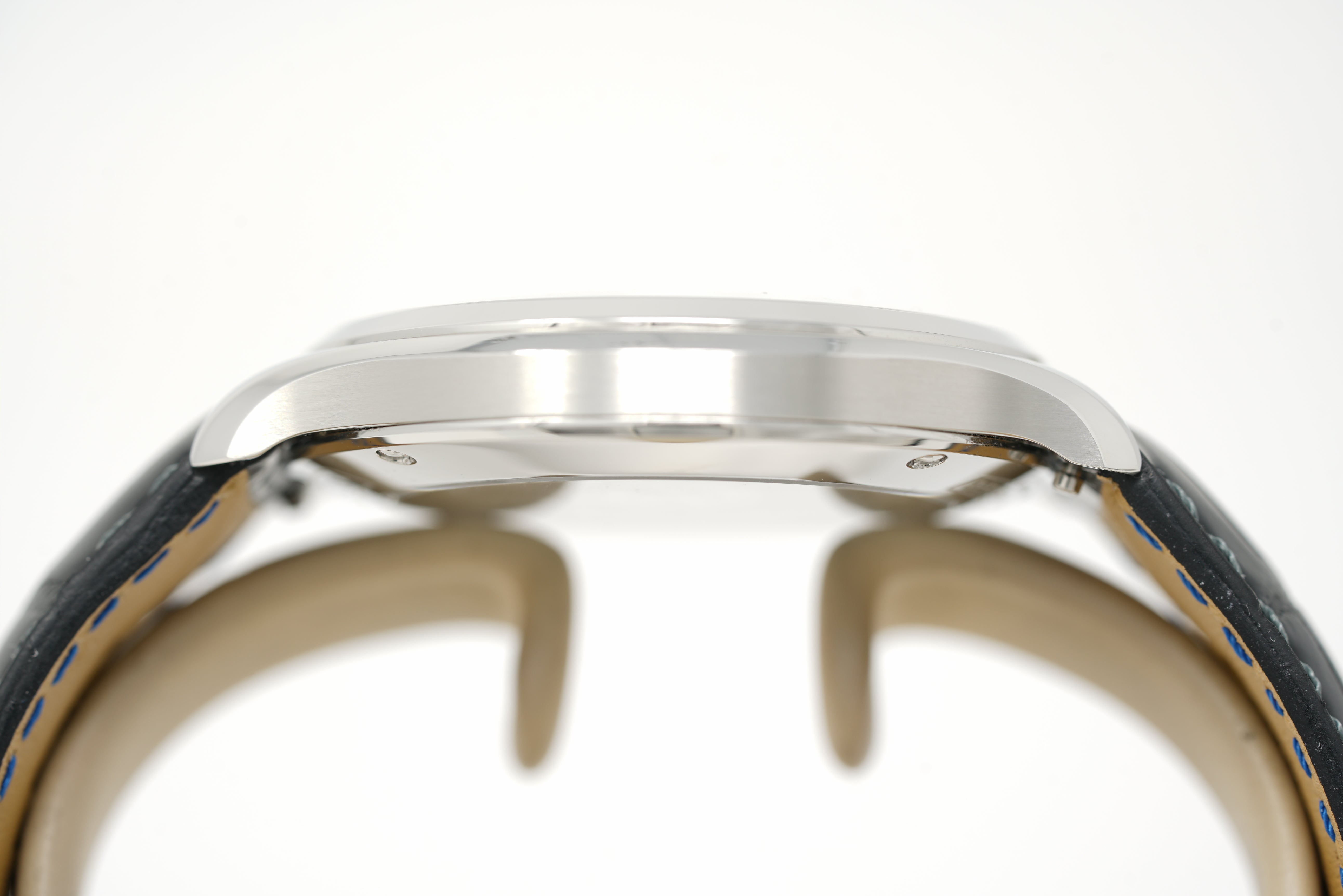 This pre-owned watch is in 87% condition due to slight marks on the lugs, bezel, and throughout the case. The strap is in 86% condition due to slight wear and creasing. The strap will accommodate a wrist size up to 7 and 1/2 inches. Originally purchased in February 2019, this watch comes with its warranty card and the one-year Topper Pre-Owned Select warranty.