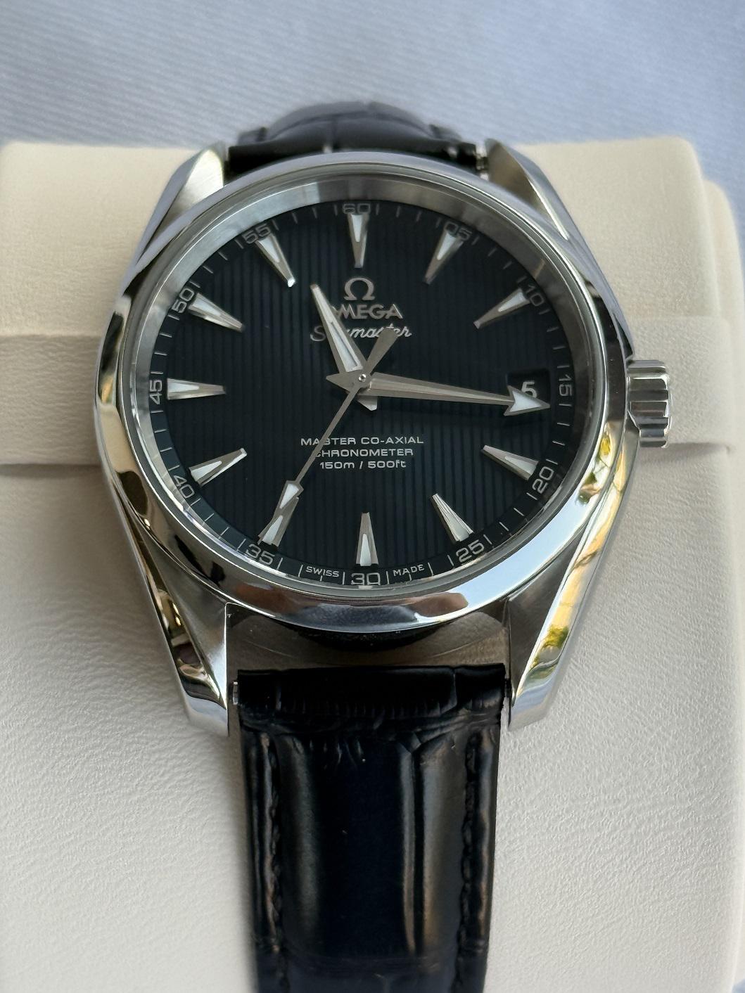 So this is a special one. Essentially a near-mint, NOS Omega Aqua Terra that’s the successor reference to the “Skyfall” watch: 38mm, vertical blue teak dial, jumping hour hand, but no framed date window (my personal preference). Watch comes on a practically new black Omega Alligator leather strap with Omega clasp. I am the second owner and have worn it only a handful of times. Even crazier is that this watch has been out of production since 2016/2017 but the original owner got a hold of it in July of 2023 which leaves over half of the Omega factor 5-year warranty left! *This is a rare watch to find in such incredible condition, and with factory warranty still remaining.* **Condition** \~9.5+ out of 10. The watch head is in “near mint” condition, meaning there are limited, mild surface marks on a couple of areas of the polished bezel (e.g., on top of the 11 o’clock lug). They’re mild enough such that I can’t really get them to photograph. I suspect you could easily polish them out but I will leave that to the next owner. The leather strap is in as-new condition. No polishing or modifications have been performed on the watch. **What’s included?** The watch (of course), black Omega leather strap, and all boxes (triple-boxed) and papers. The box includes a red Omega travel case. The watch comes with official warranty from Omega/SGUSA and the card is dated July 11th, 2023, leaving over half of its factory 5-year warranty. **Trades accepted?** *NO* **Price and deal structure/terms:** **$4,199 firm**. I have priced this to sell. Please note: low-ball offers will be ignored or promptly rejected. **\*\*\*Contiguous US sales only** Direct wire preferred, [escrow.com](http://escrow.com) encouraged, and open to other payment methods as needed/case-by-case. Given the amount of the purchase--and especially if entrusting me with direct wire--I'm happy to chat on the phone, Facetime, etc. and provide all relevant ID and contact information in order to put your mind at ease. This is my first post here at r/Watchexchange but I’ve had multiple great transactions over at WUS (same profile name/photo) – contact me over there to confirm legitimacy if you like. The watch is sitting in the box now, and will not be worn until it is sold. Happy to answer any questions and/or provide additional photos. I will miss this watch so I hope it goes to a good home. Timestamp [here](https://drive.google.com/file/d/1eP12bsxhCjRYEQHWbGg8PRrPrqKy6dmK/view?usp=drive_link). Google Drive folder with photos can be found [here](https://drive.google.com/drive/folders/1v3u_KUJlR-8ttTQaNzom2SU6bRZVRyTj?usp=drive_link). **Stats and Specs directly from Omega:** **Seamaster Aqua Terra 150M 38.5 mm, steel on leather strap** * Reference: 231.13.39.21.03.001 * Width between lugs: 19 mm * Lug‑to‑lug width: 45.50 mm * Thickness: 12.84 mm * Case diameter: 38.5 mm * Case: Steel * Dial color: Blue * Crystal: Domed scratch‑resistant sapphire crystal with anti‑reflective treatment on both sides * Water resistance: 15 bar (150 meters / 500 feet) * Total product weight (approx.): 82 g * Caliber: Omega 8500 * Movement Type: Self winding * Power reserve: 60 hours