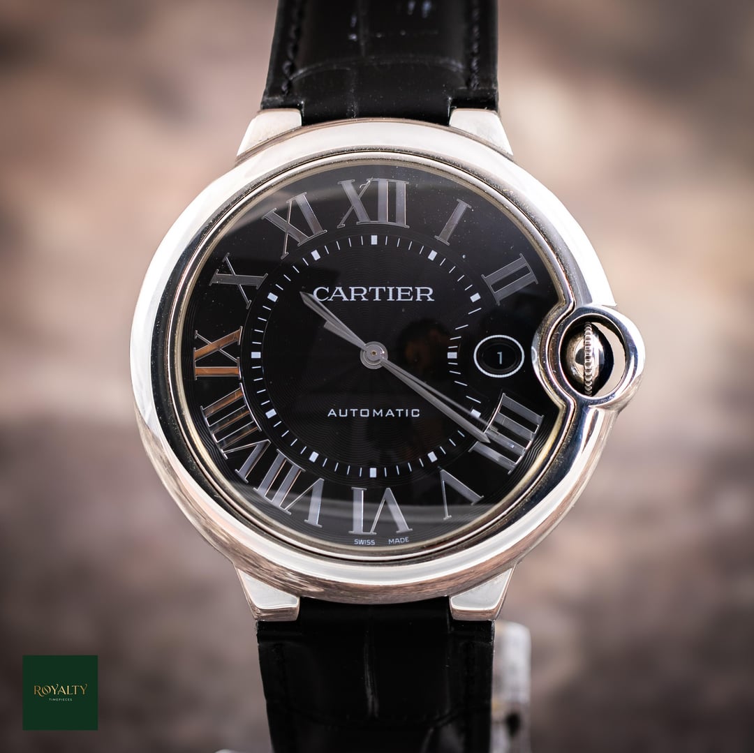 Cartier Ballon Bleu de Cartier Black Dial WSBB0003 Case: 42mm Condition: This timepiece is in very good condition, showing only minor signs of wear on the case and original strap that are barely visible to the naked eye. It has been meticulously kept by its previous owner. The sapphire crystal is clean, and the iconic crown operates perfectly. This watch presents beautifully on the wrist and is a stunning example of a well-cared-for timepiece. Accessories: This offering includes the authentic Cartier presentation box and the instruction booklet which contains the warranty certificate. The watch comes mounted on its original Cartier black leather strap, which remains in very good condition consistent with the rest of the piece. The Cartier Ballon Bleu is one of the most iconic and recognizable designs in modern watchmaking. With its signature "floating" crown guard protecting the blue cabochon spinel, it creates a visual disruption in the case's perfect roundness, lending it an air of classic elegance and avant-garde design. The WSBB0003, with its striking black guilloché dial, offers a sophisticated and versatile take on this legendary timepiece, embodying the Parisian jeweler's seamless blend of luxury and horological skill. $5️⃣1️⃣5️⃣0️⃣ + 🏷️ MSRP: \~7.7k Shipping available to anywhere in CONUS. Shop with confidence, many references available and authenticity guaranteed! NY residents subject to sales tax without resale certificate IG: royalty.timepieces Timestamp: [https://imgur.com/CWpWFTA](https://imgur.com/CWpWFTA)