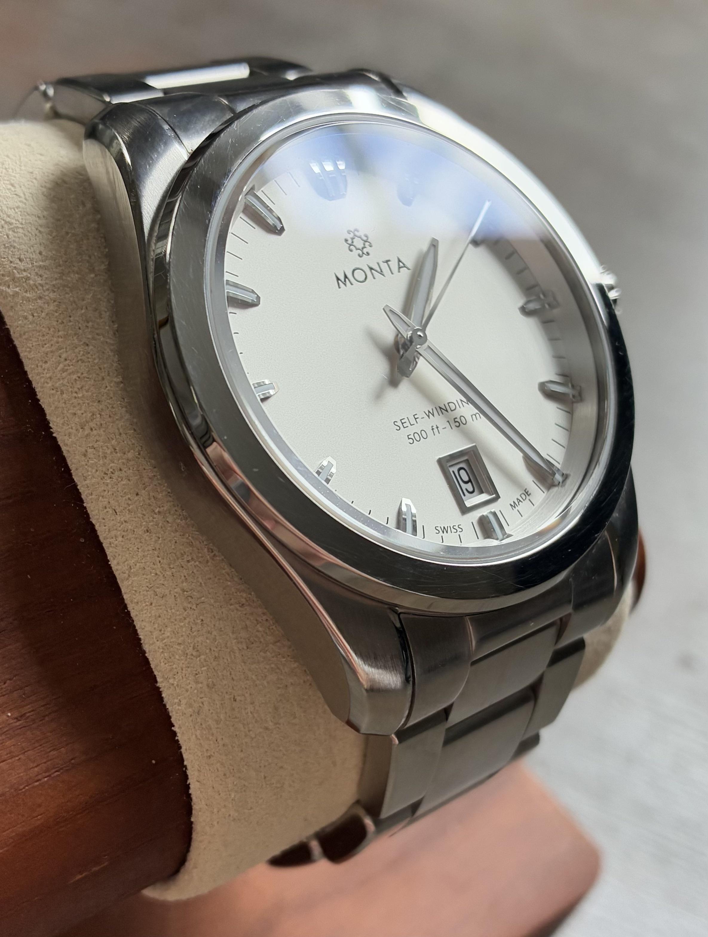 Hi folks - liquidating some pieces I don’t wear often to fund a new purchase! Finally getting a Cartier and it’s going to be great for someone else to enjoy this gem. The Monta Noble in Opalin White needs no introduction. I’ve heard Monta described as the Rolex of microbrands and I can’t say I disagree. It’s been worn and has hairline scratches, a decent mark on the clasp but no major dings. I do not possess the full kit, this is watch only plus links and a travel pouch. Thus, I’m pricing it accordingly. **$800 USD** CONUS, I will ship out this morning provided we can move quickly. Zelle/Venmo only. Pics: https://imgur.com/a/707725h Timestamp: https://imgur.com/a/lLJlOOg **NOTE**: Serious buyers may request a personalized video with your username mentioned as well as any other details needed to provide peace of mind. I am a serious collector and despise the pieces of absolute scum that have invaded this sub.