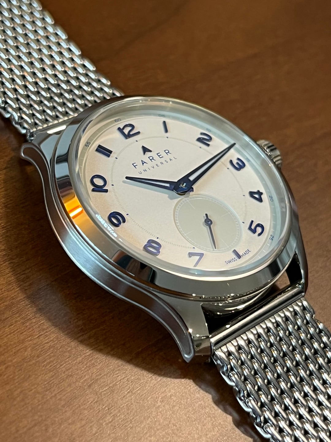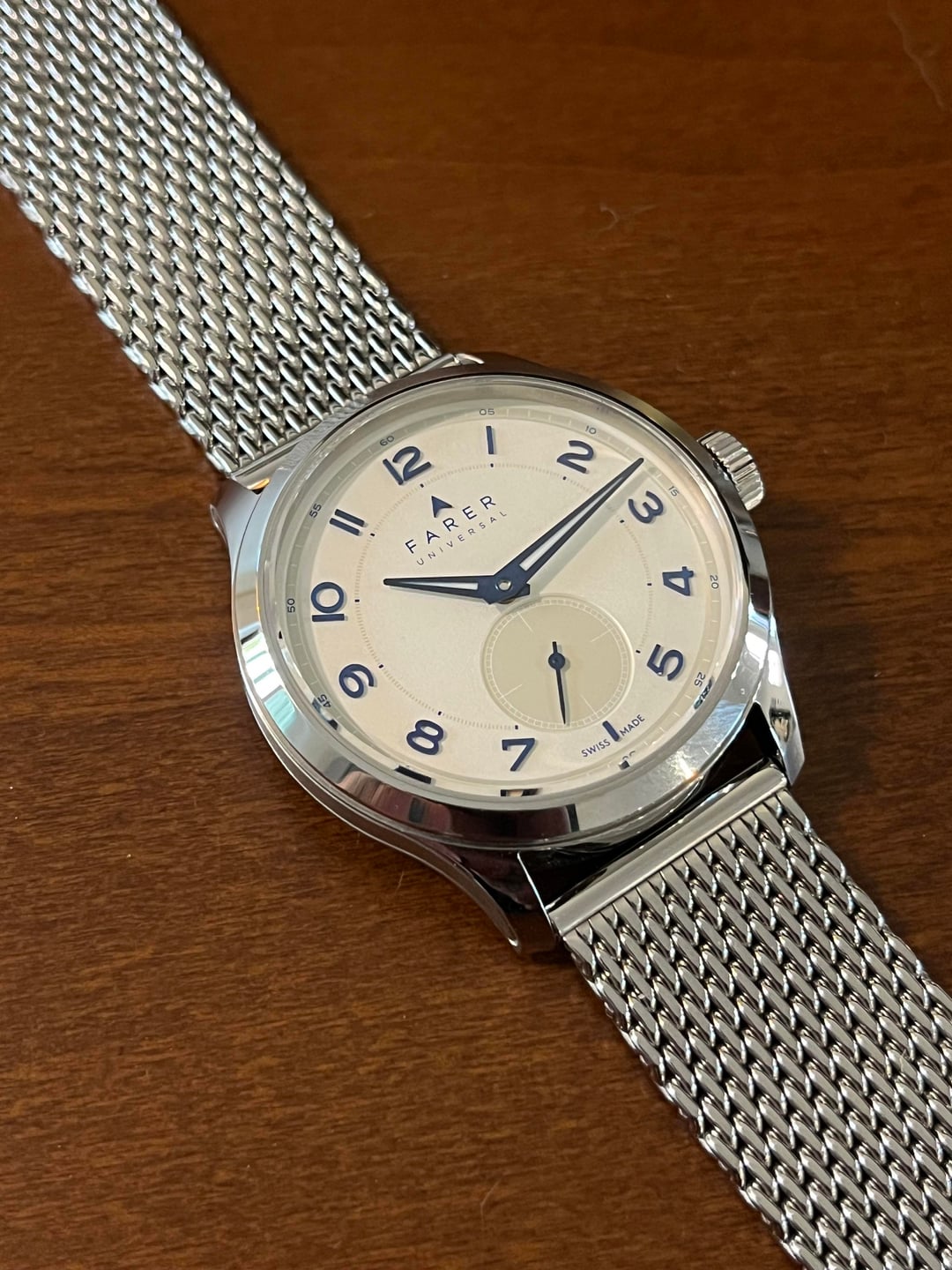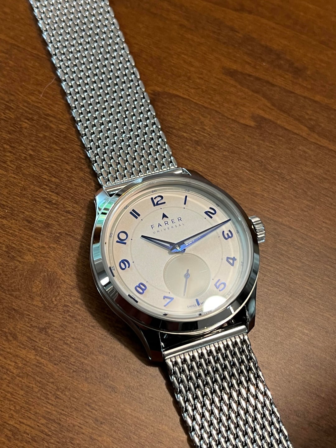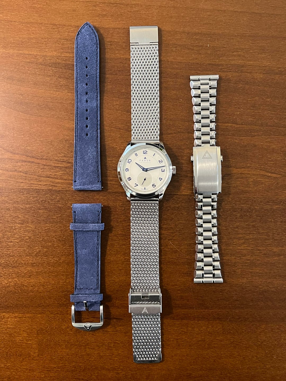 Up for sale is the highly regarded and perfectly proportioned Farer Balfour 38 mm — this is a full set from this year, 2025. This watch has earned rave reviews since its recent release, and I gotta say, it really lives up to the hype. The way light plays across the dial is unreal — I tried my best to capture it in the photos. My favorite part is the gorgeous blue applied indices. It houses a manual wind Swiss Made La Joux-Perret D100 calibre finished to LJP’s highest soigné standard. I personally enjoy manual wind as it makes med feel more connected to my watch. This one comes with an additionally purchased Farer Milanese bracelet ($100 value), a denim suede leather strap (worn once), and a lightly worn Fornster Bullet Bracelet ($160 value with some light desk-diving marks on clasp). Condition is truly excellent, with minimal signs of wear. No trades, please. Rating this watch a 9/10 just because it was worn 3 times. ⸻ Price: $1300 shipped (CONUS) Payment: Zelle or PayPal G&S (buyer pays fee) Shipping: Fully insured, tracked via FedEx ⸻ Dimensions: Diameter - 38mm Depth - 7.95mm Lug-to-Lug - 42.8mm Pin-to-Pin - 40.2mm Lug Width - 20mm Happy to hop on a call or FaceTime! Transparency is important. FROM FARER’S WEBSITE — “The Balfour is the perfect example of how less can be more. Punctuating the jasmine white dial are the hour markers. These applied numerals are finished in a vivid electric blue that contrasts wonderfully with the neutral dial. The tapered hands have a matching blue finish and are filled with the latest (and brightest) Grade X2 Super-LumiNova. The polished blue surfaces of both elements are incredibly dynamic, shifting in colour as the lighting changes, whilst always being easy to read. At six o’clock sits a sunken sub-seconds dial in a warm grey that complements the main dial colour, and on either side of the numerals sit dual minute tracks in the same grey tone with blue highlights. As you would expect, this refined dial is protected by a scratch-resistant sapphire crystal. And, it’s housed within an incredibly svelte 38mm steel case finished to the highest “Grade A” standard, something that’s usually only seen on the most premium Swiss watches. It’s a markedly thin case, being just 7.95mm thick, and with its curved lugs, it hugs the wrist perfectly. All of which makes this the epitome of modern sophistication. A watch that’s sleek enough to sit unnoticed on the wrist, with a dial bold enough to make a confident statement, and an exceptionally high level of finishing throughout every element. “